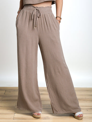 Get ready to strut your stuff in our Summer Journey Pin Striped Linen Pants! Featuring flattering stripes and a comfortable elastic waistband with a drawstring tie, these pants are perfect for a casual day out or a relaxed summer vacation. No need to sacrifice style for comfort with these unique and playful pants!