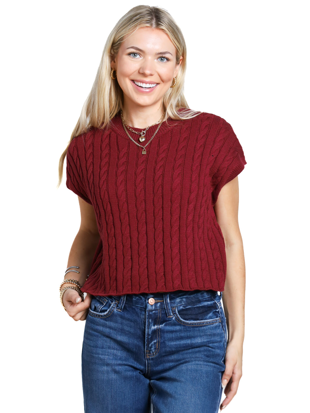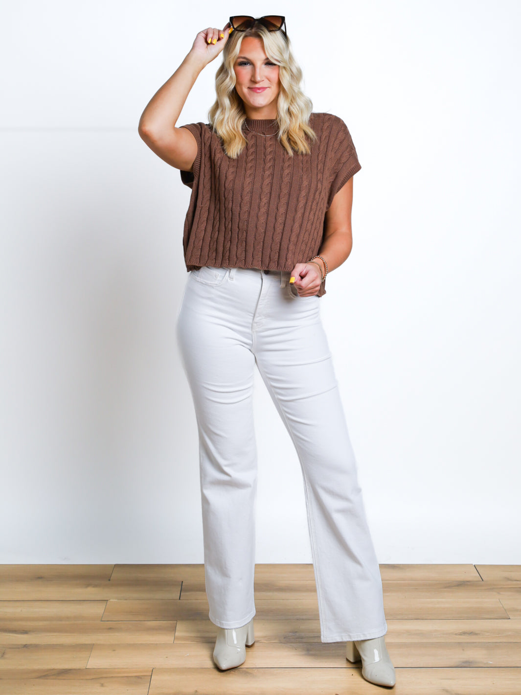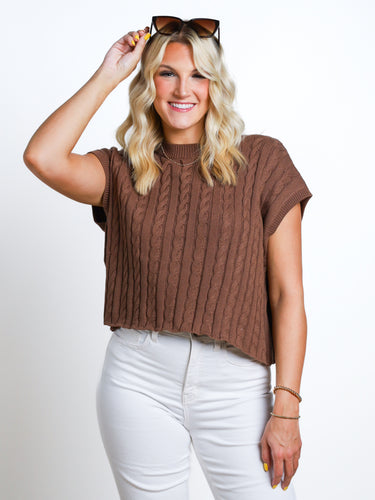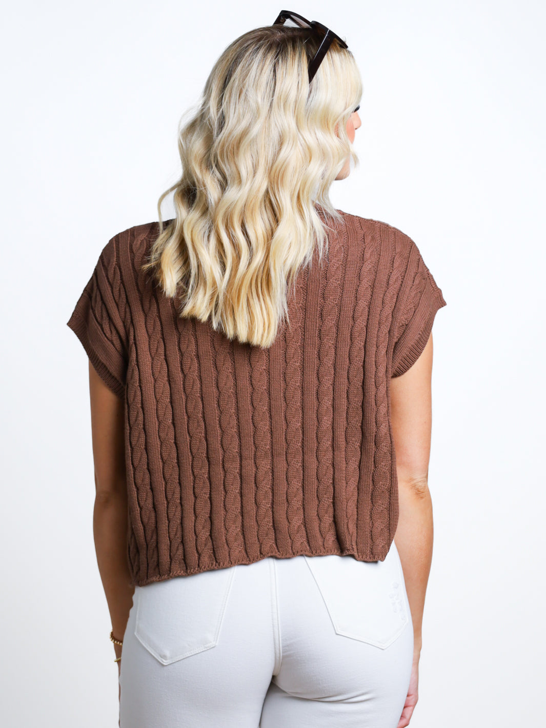 Discover your perfect match with our Meet Your Match Cable Knit Sweater Vest. This sleeveless, round neckline vest boasts a charming brown color and classic cable knit design. Keep cozy and stylish all season long with this playful addition to your wardrobe!