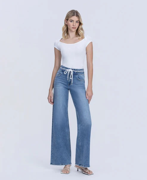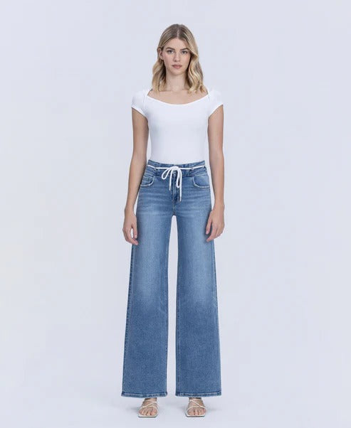 Drawstring Waist Wide Leg Jean