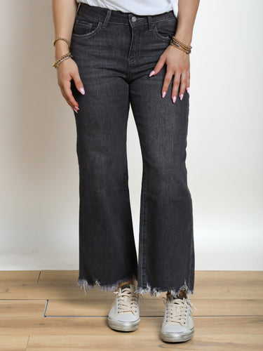 Step out in style with the Luna High Rise Wide Leg Denim, these washed black jeans feature a trendy frayed hem. These jeans combine comfort and edge, perfect for adding a playful twist to your everyday look. Embrace the flattering high rise and roomy wide leg for effortless movement and standout vibes.