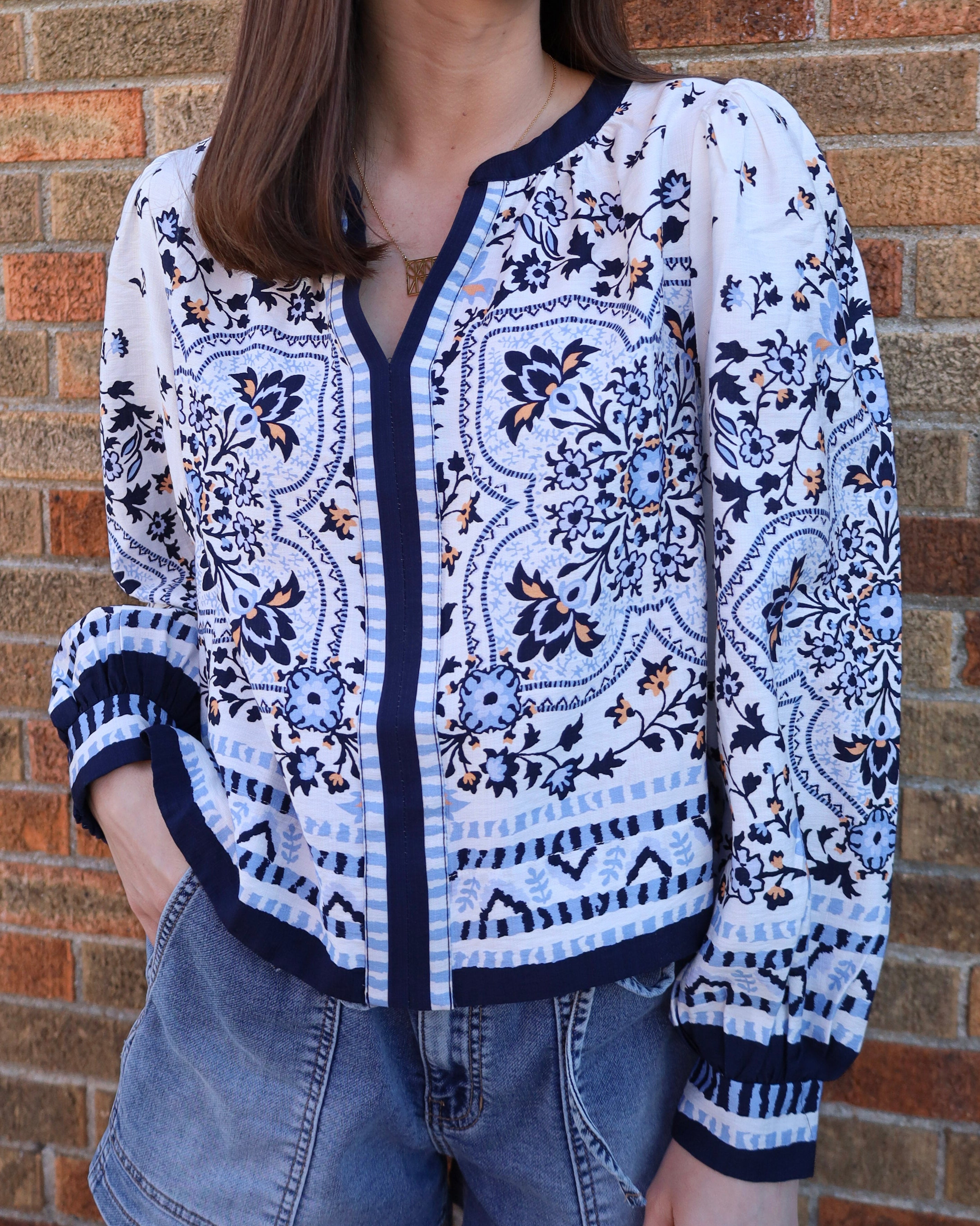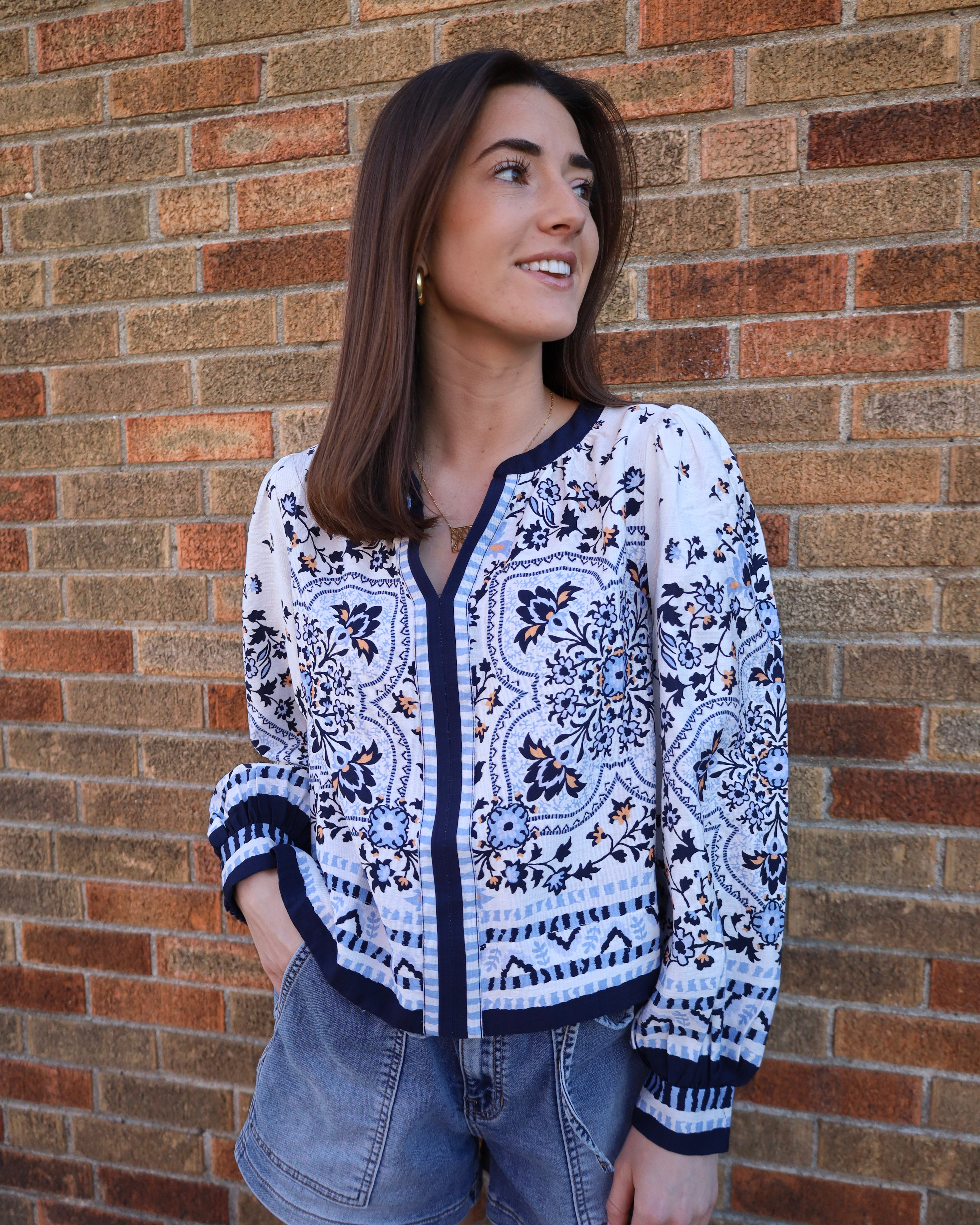 Printed V-Neck Blouse