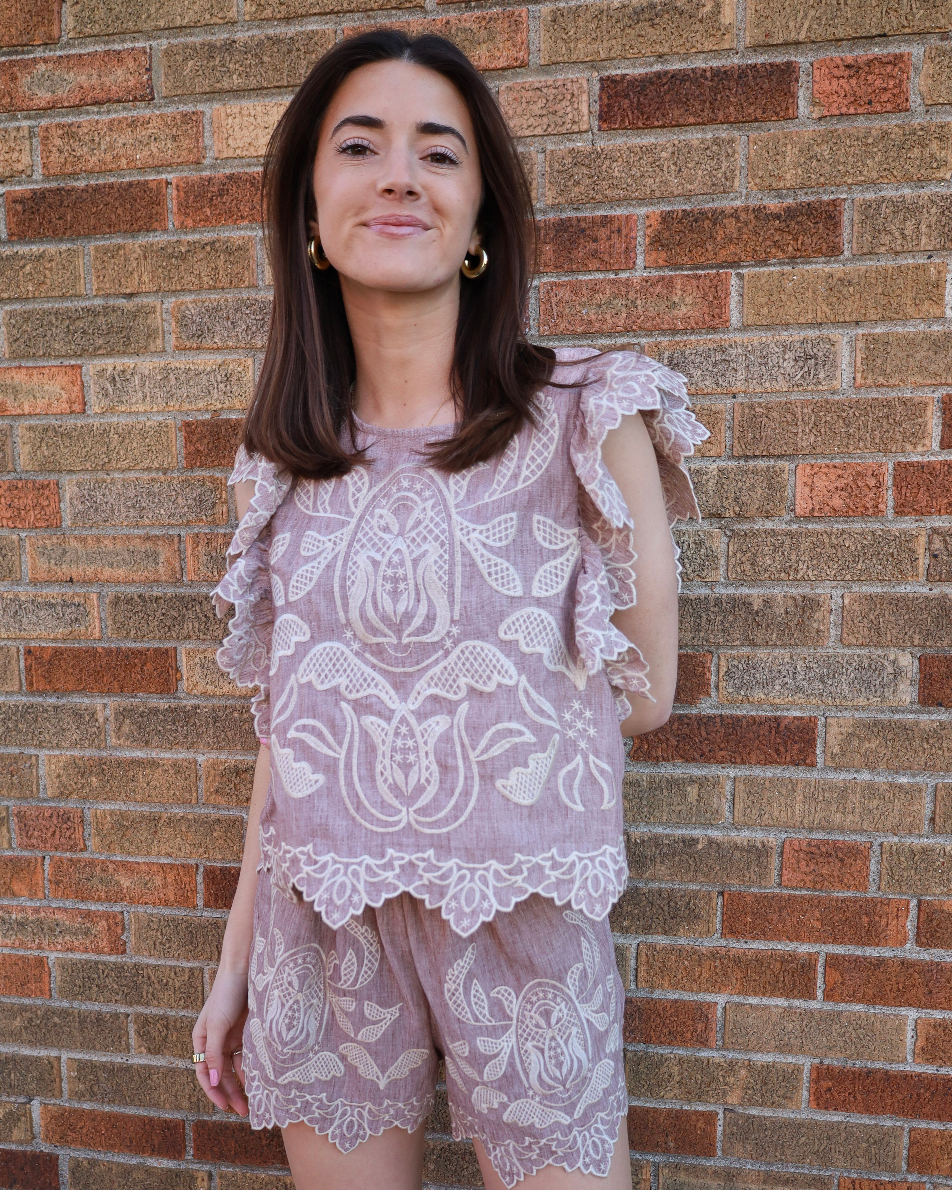 Ruffle Sleeve Embroidered Blouse