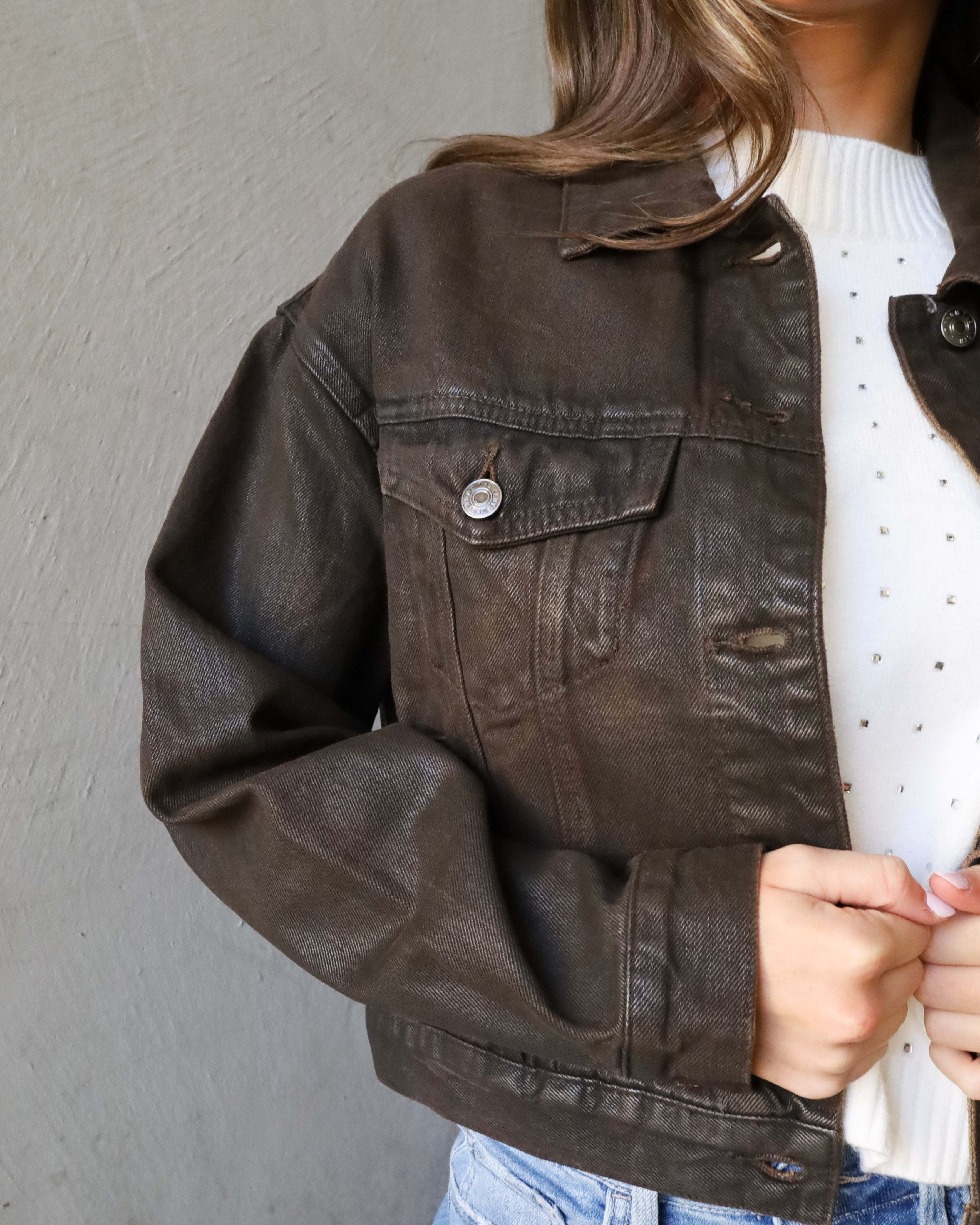 Coated Long Sleeve Denim Jacket