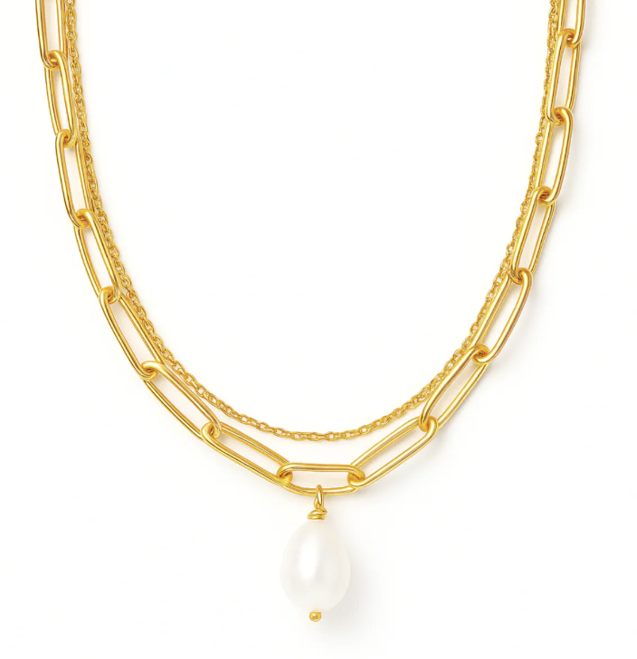RENEE Double Chain Pearl Choker Necklace