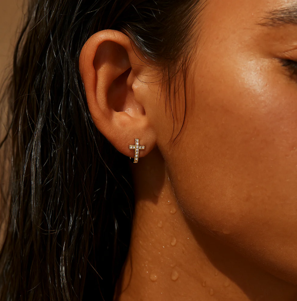 RIDGE Cross Huggie Hoop Earrings