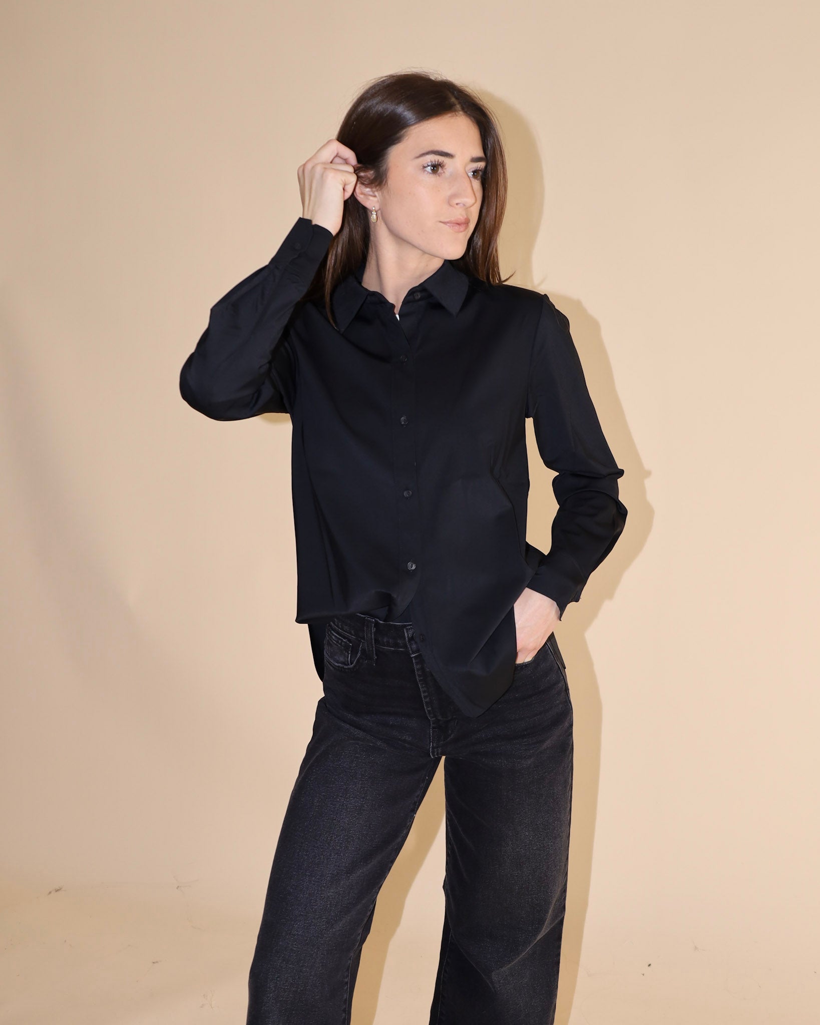 Get ready to strike a pose in this playful and stylish Pose For Me Button Down Blouse. With its crisp white color and classic button down design, this long sleeve blouse from LYSSE brand will elevate any outfit and have you looking effortlessly chic. Time to channel your inner model!