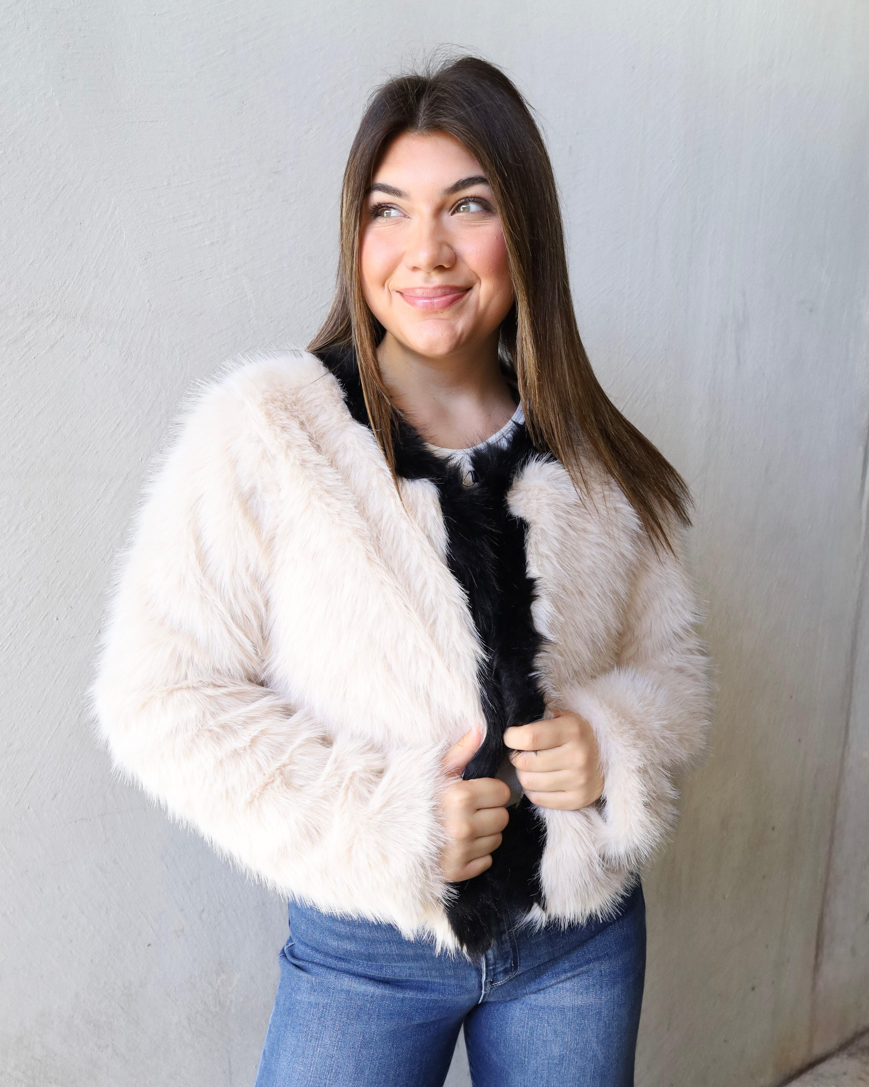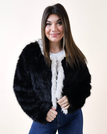 Contrast Trim Faux Fur Jacket