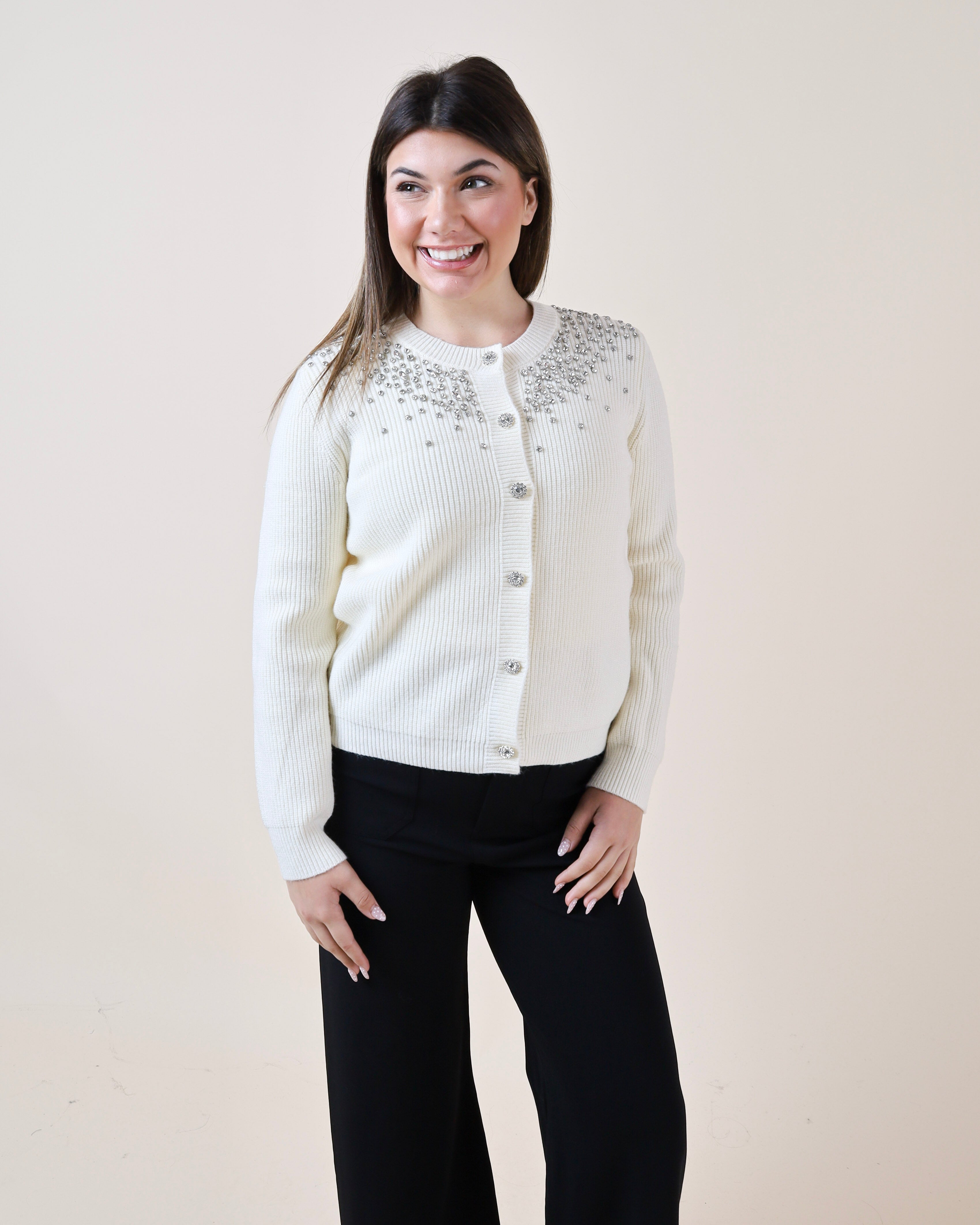 FIT: True to size. Model typically wears a Medium in cardigans.