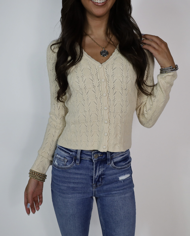 Cozy up in style with our playful cream Cardigan Sweater. Perfect for layering, it adds a fun twist to any outfit with its easy button closure and soft fabric.