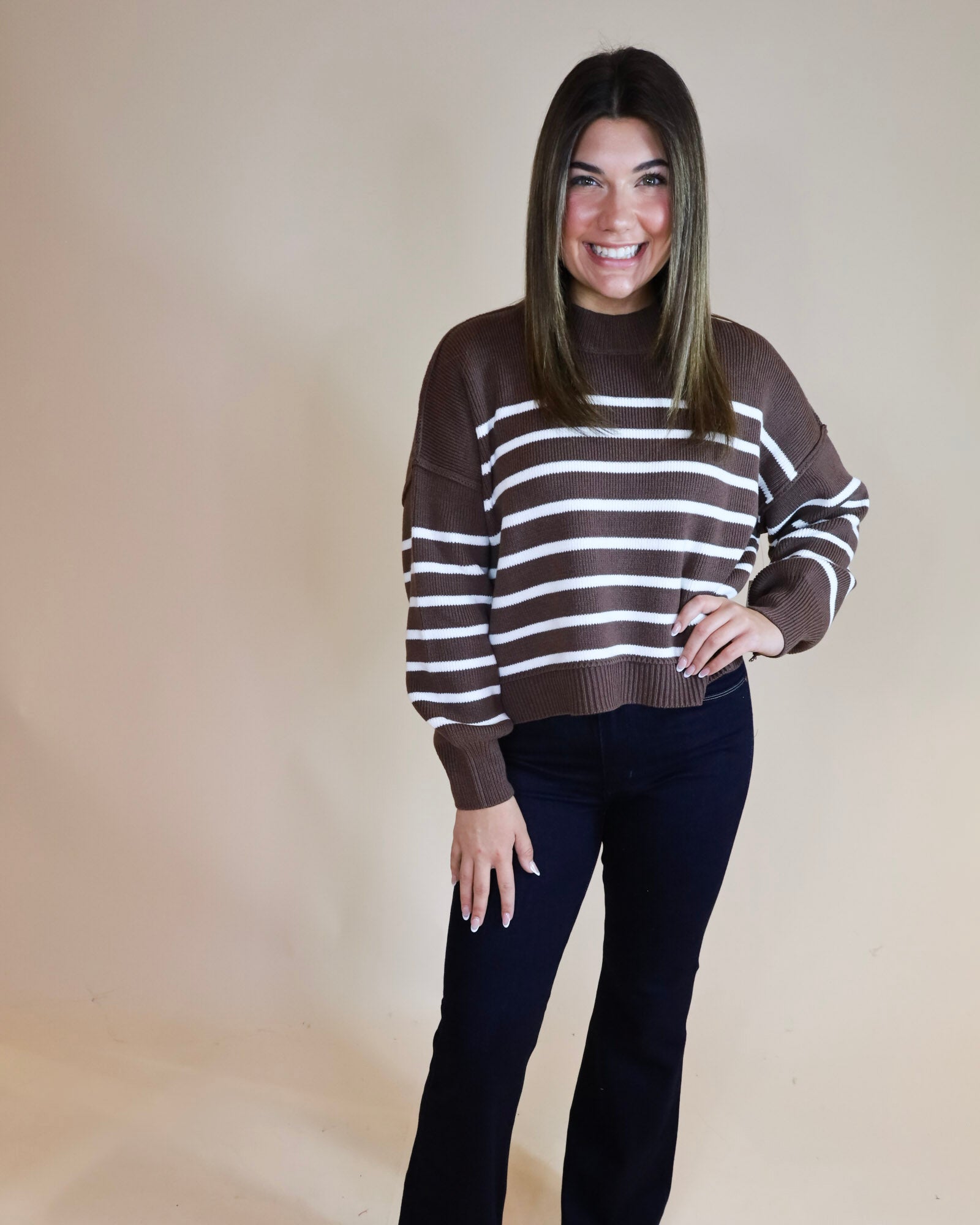 Cozy up in our Exposed Seam Striped Sweater, now back by popular demand! Its relaxed fit makes it your go-to for effortless comfort, while the stylish exposed seams add a fun twist to classic stripes. Perfect for lounging or layering, this best-seller keeps your look fresh and playful all season long.