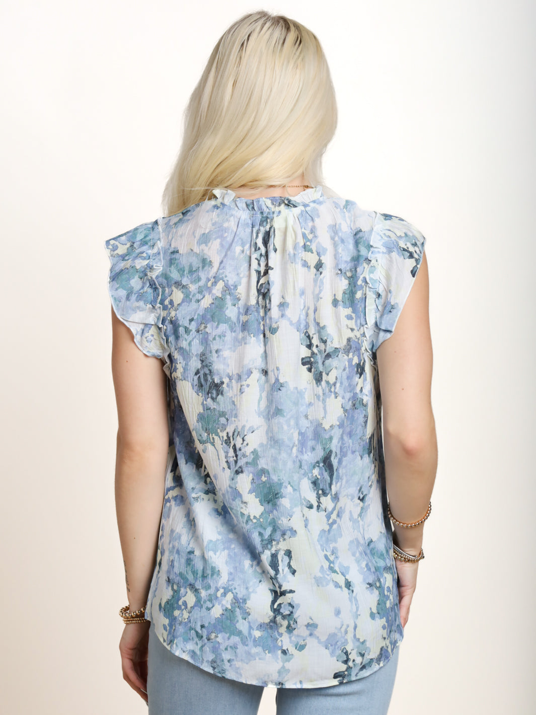 Dive into style with our whimsical ruffle sleeve blouse featuring a captivating print in gorgeous shades of blue! This fun piece brings the perfect splash of personality to jeans, skirts, or anything your fashion-loving heart desires!
