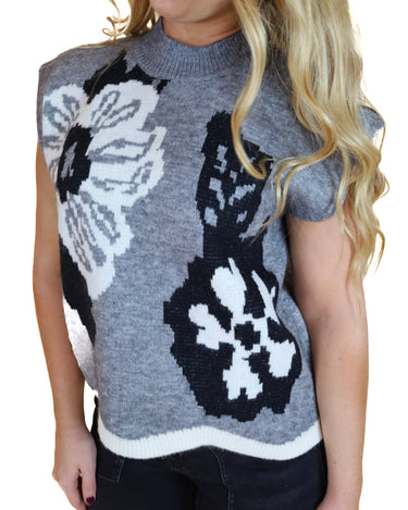 Flower Print Short Sleeve Sweater