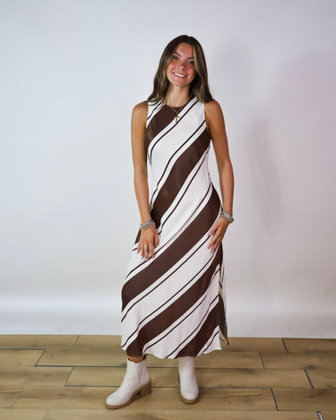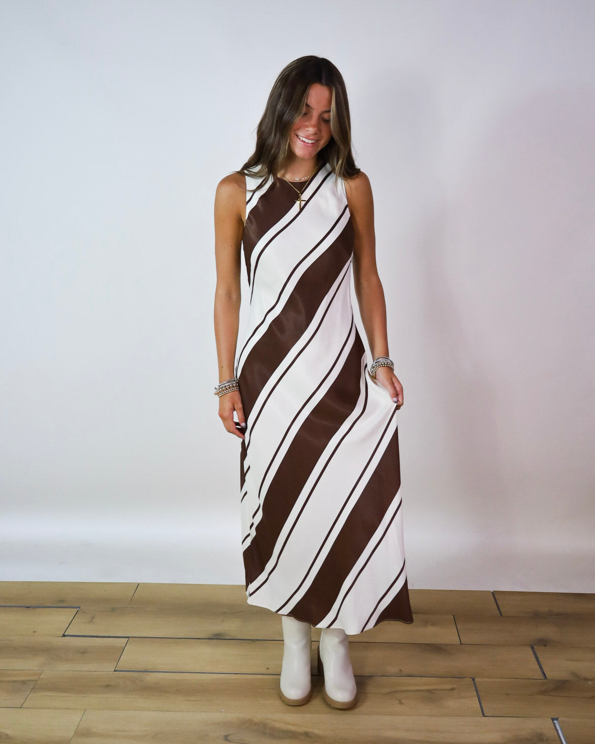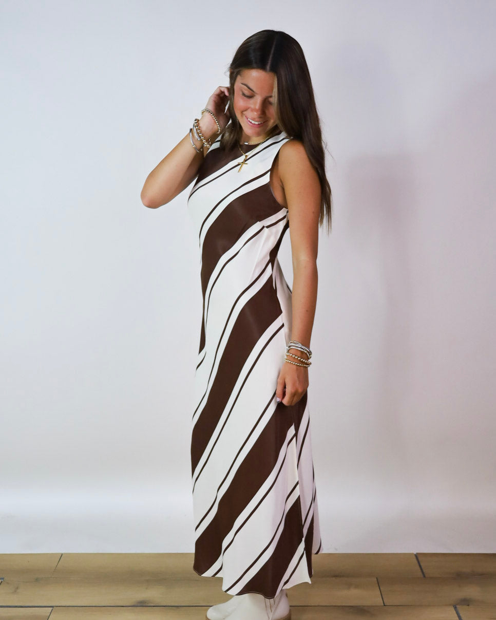 Step into style with this High Neck Striped Midi Dress that effortlessly blends chic and comfort. Its playful stripes and flattering midi length make it perfect for day-to-night adventures. The high neck adds a touch of elegance while keeping things fun and flirty. Whether you're brunching with friends or dancing the night away, this dress has got you covered in vibrant, confident style.