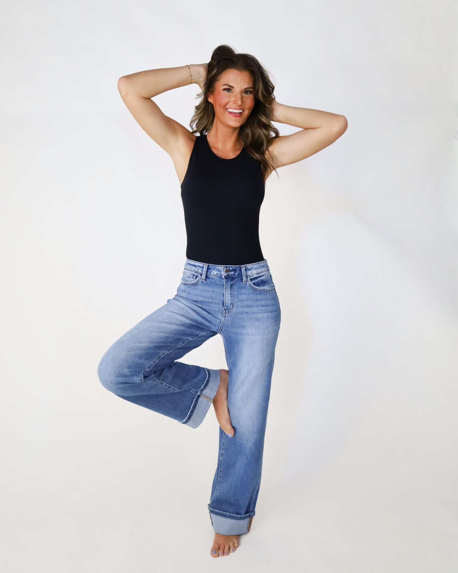 Lisa is 5'10, wearing a size 25. Flattering at the waist and relaxed through the legs, they strike the perfect balance between comfy and cool. The playful cuffed hem adds a fun twist, making them ideal for everything from brunch dates to weekend adventures. Pair with your favorite tee or a chic blouse for an effortlessly trendy look that moves with you.