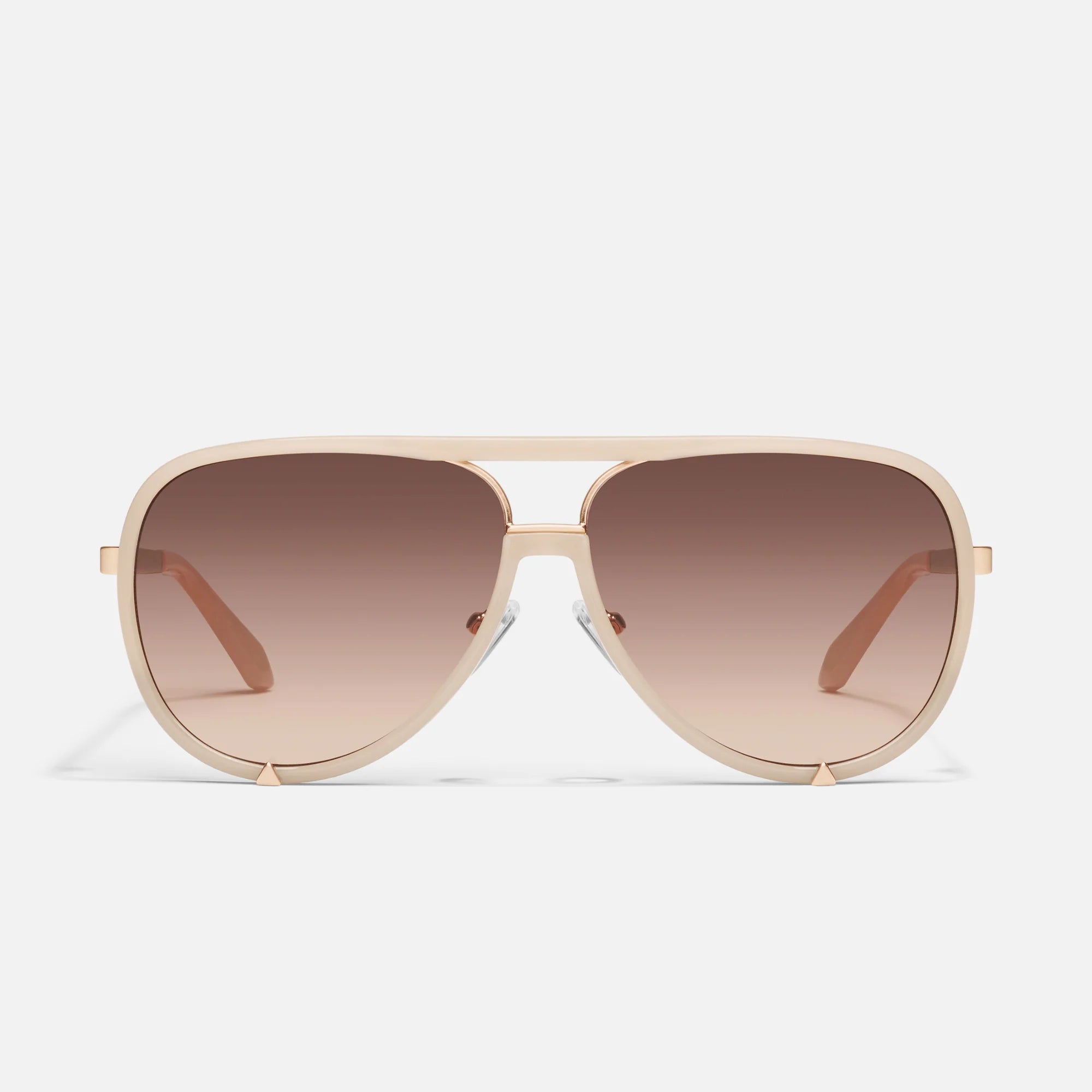 Take your style to new heights with HIGHPROFILE Quay Sunglasses. The aviator shape, squared-off metal arms, and bone/brown fawn color combo make for a bold and unique look. Stay cool and confident with QUAY sunglasses.