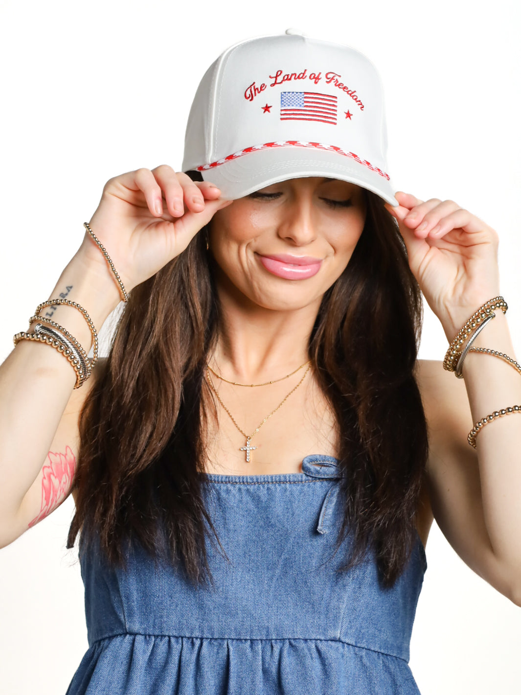 Add a touch of freedom to your style with our Land of Freedom Flag Trucker Hat. Its cream base and bold embroidered flag in red or blue will make you stand out. Plus, its adjustable fit ensures the perfect fit for any head. Get yours now!