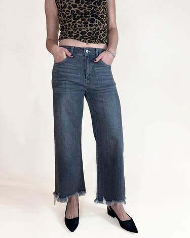 Step out in style with the Luna High Rise Wide Leg Denim, these washed black jeans feature a trendy frayed hem. These jeans combine comfort and edge, perfect for adding a playful twist to your everyday look. Embrace the flattering high rise and roomy wide leg for effortless movement and standout vibes.