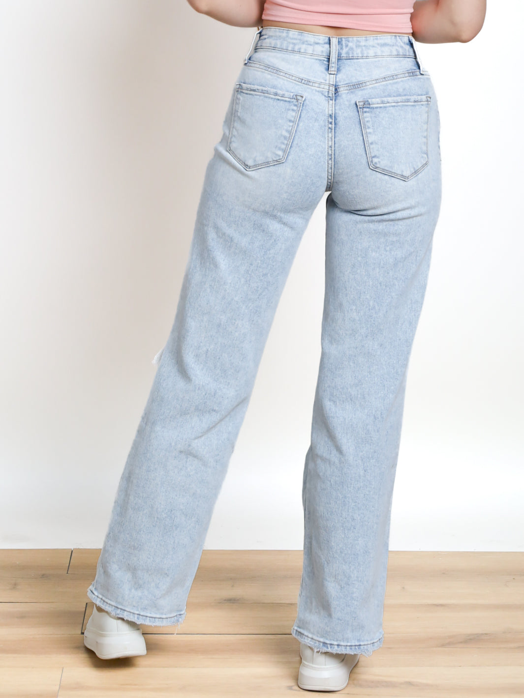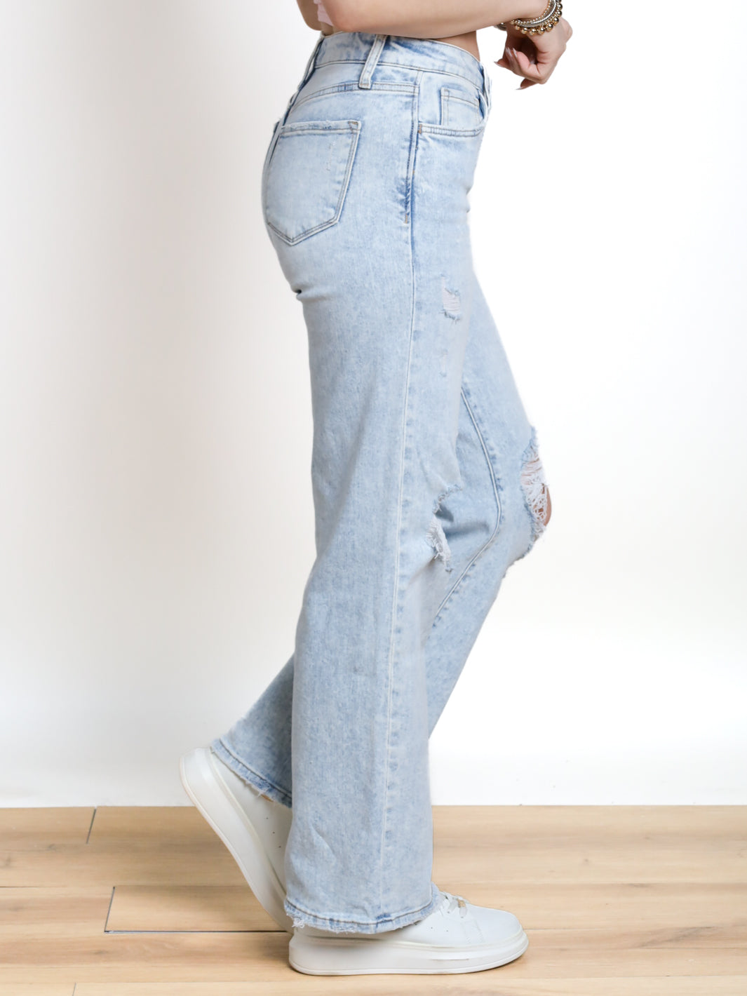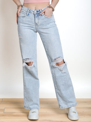 Get that vintage vibe with Mila High Rise Vintage Wide Leg Jeans from LOVERVET. Distressed knees and a light wash add character to the classic wide leg fit, while the 5-pocket detail keeps you practical. Button and zipper front closure for easy wear. Get ready to turn up the fun in these quirky jeans!