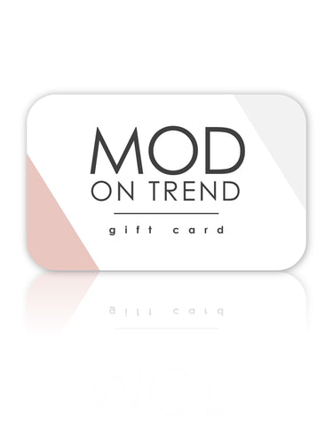 Give the gift that always fits! With a MOD ON TREND e-gift card, your loved one can shop anytime, anywhere when they see something that catches their eye. And, just when you thought it couldn't get any better, e-gift cards are valid online only at www.modontrend.com!