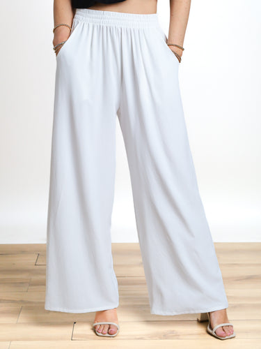 Ready to take your wardrobe to the next level? Look no further than our More To Come Crepe Wide Leg Pants! With a chic black or white crepe fabric, wide leg fit, and comfortable elastic waistband, these pants are both stylish and functional. Plus, they have pockets for all your essentials. Elevate your look with these must-have pants!
