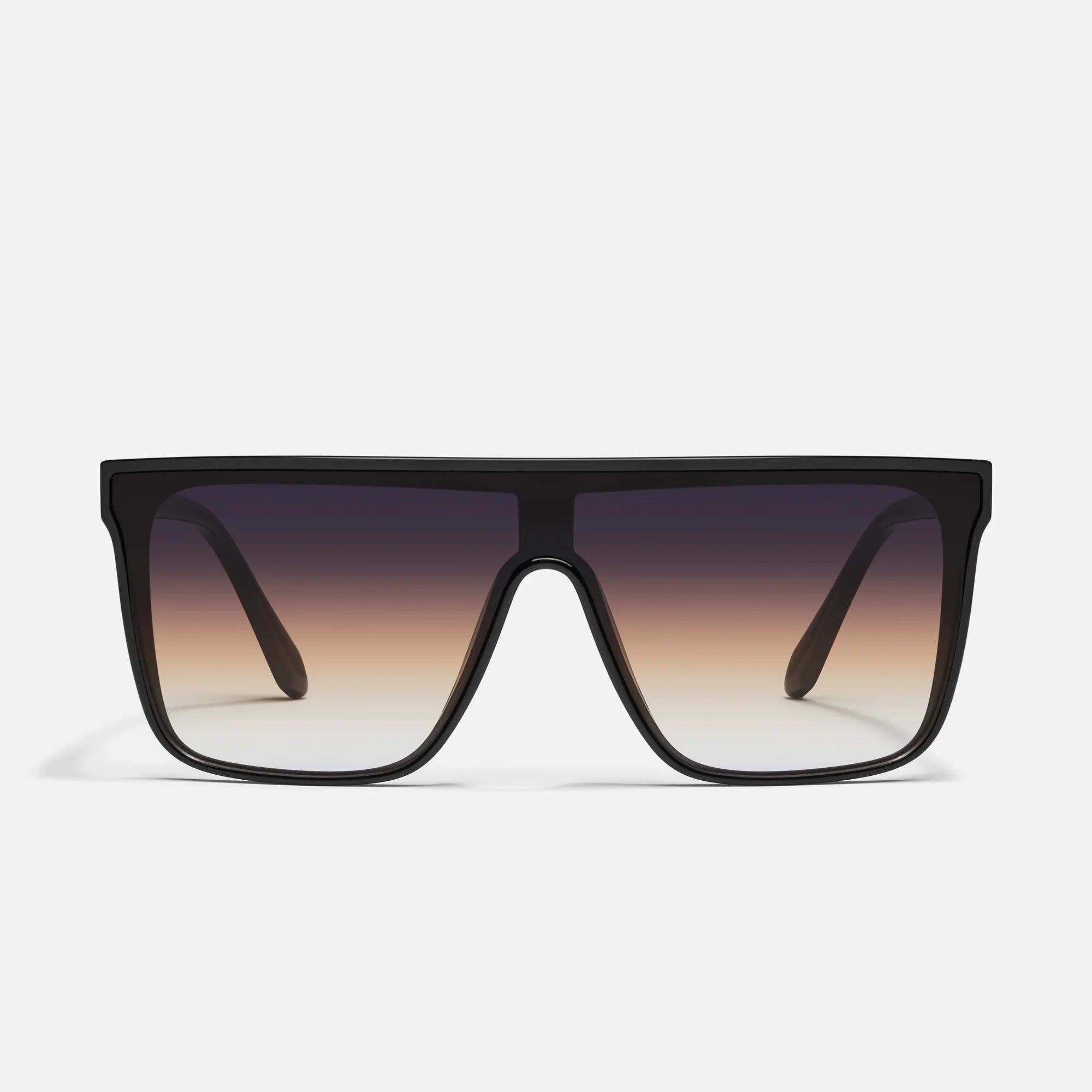Add a pop of personality to your style with NIGHTFALLMED Quay Sunglasses. These black frame shades feature a unique dusk poppy lens and trendy shield shape. Perfect for standing out in the crowd, these QUAY sunglasses are a must-have accessory.
