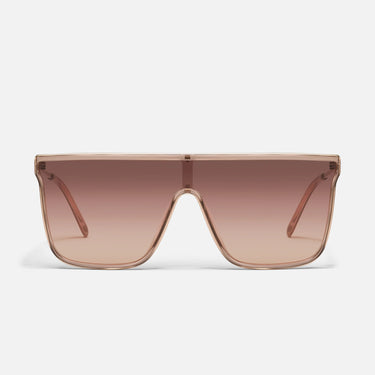 Shade your eyes in style with the NIGHTFALLREMIX Quay Sunglasses. These doe/brown fawn sunglasses with rose gold lenses make a statement with their unique shield shape. Protect your eyes while standing out from the crowd!