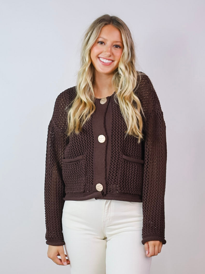 Wrap yourself in cozy charm with our Open Knit Chunky Cardigan. Its airy knit design keeps you comfy without overheating, perfect for layering on breezy days. The chunky texture adds a fun, playful vibe to any outfit, making it your go-to piece for casual coolness. Easy to throw on and style, this cardigan brings warmth and whimsy together effortlessly.