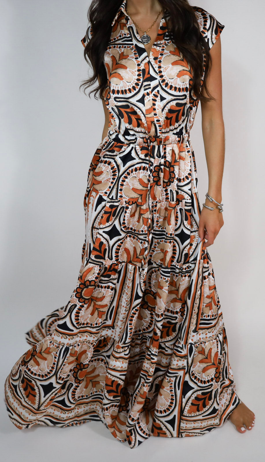 Step into effortless style with this V-Neck Maxi Dress. Its flowing silhouette and vibrant print make it perfect for sunny days and breezy evenings. Your new go-to for playful, easy elegance.