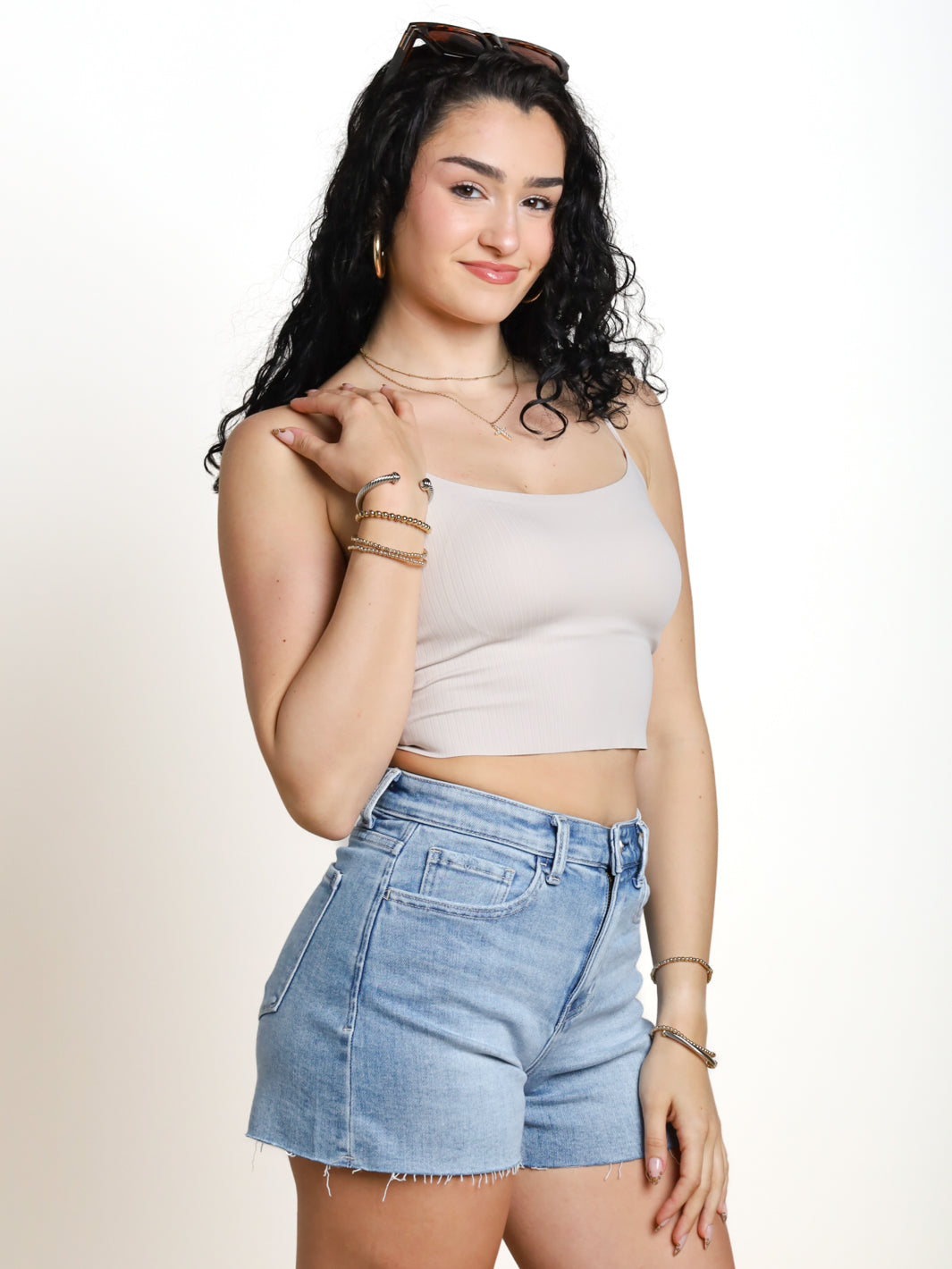 Introducing the Rare Presence Seamless Ribbed Bralette Tank! Keep it light in this gray bralette that offers a seamless and ribbed design. Perfect for everyday wear, this tank will provide both comfort and style.
