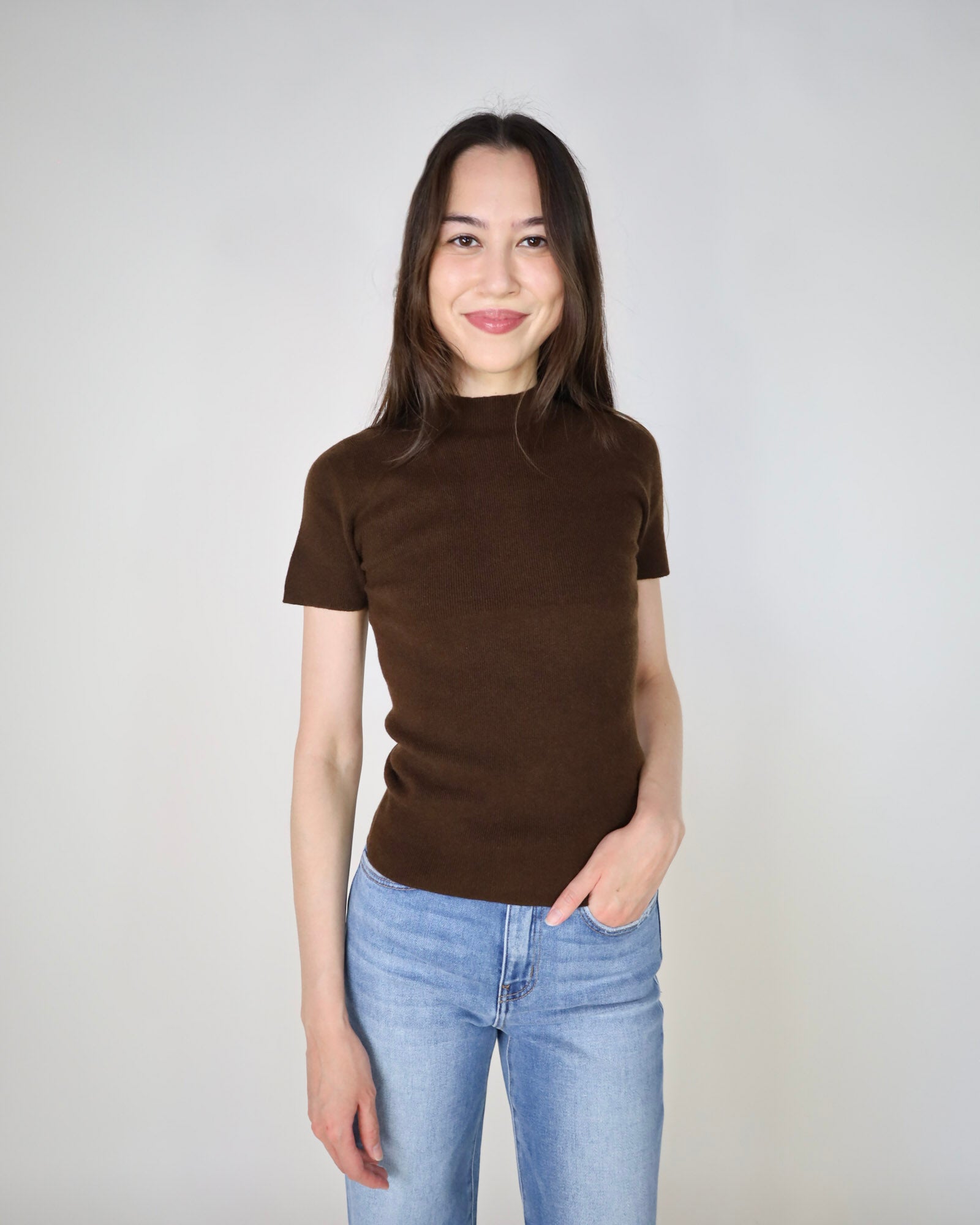 This chic mock neck adds a dash of sophistication, while the short sleeves keep it breezy and fun. Perfect for layering or wearing solo, it's your new go-to for playful comfort and effortless cool.