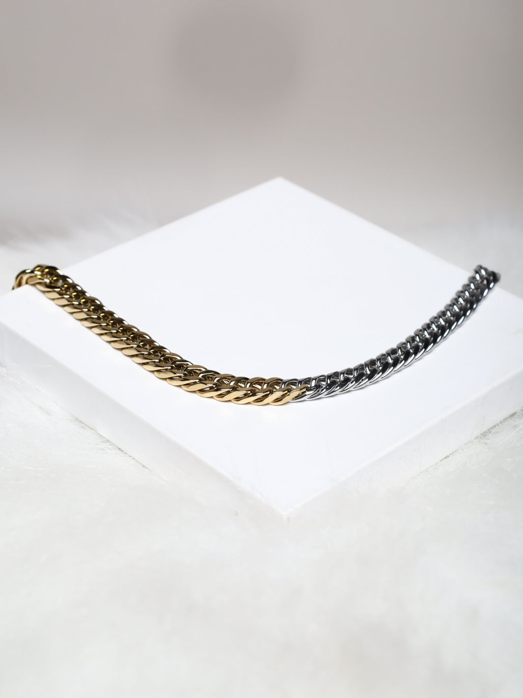 Unleash your style with the Two Tone Chain Necklace from CHANSUTTPEARLS. This unique piece features an adjustable length and a durable water-resistant design. Plus, with its lifetime warranty, you can rock this silver and gold necklace worry-free. Embrace the best of both worlds and elevate your look today!