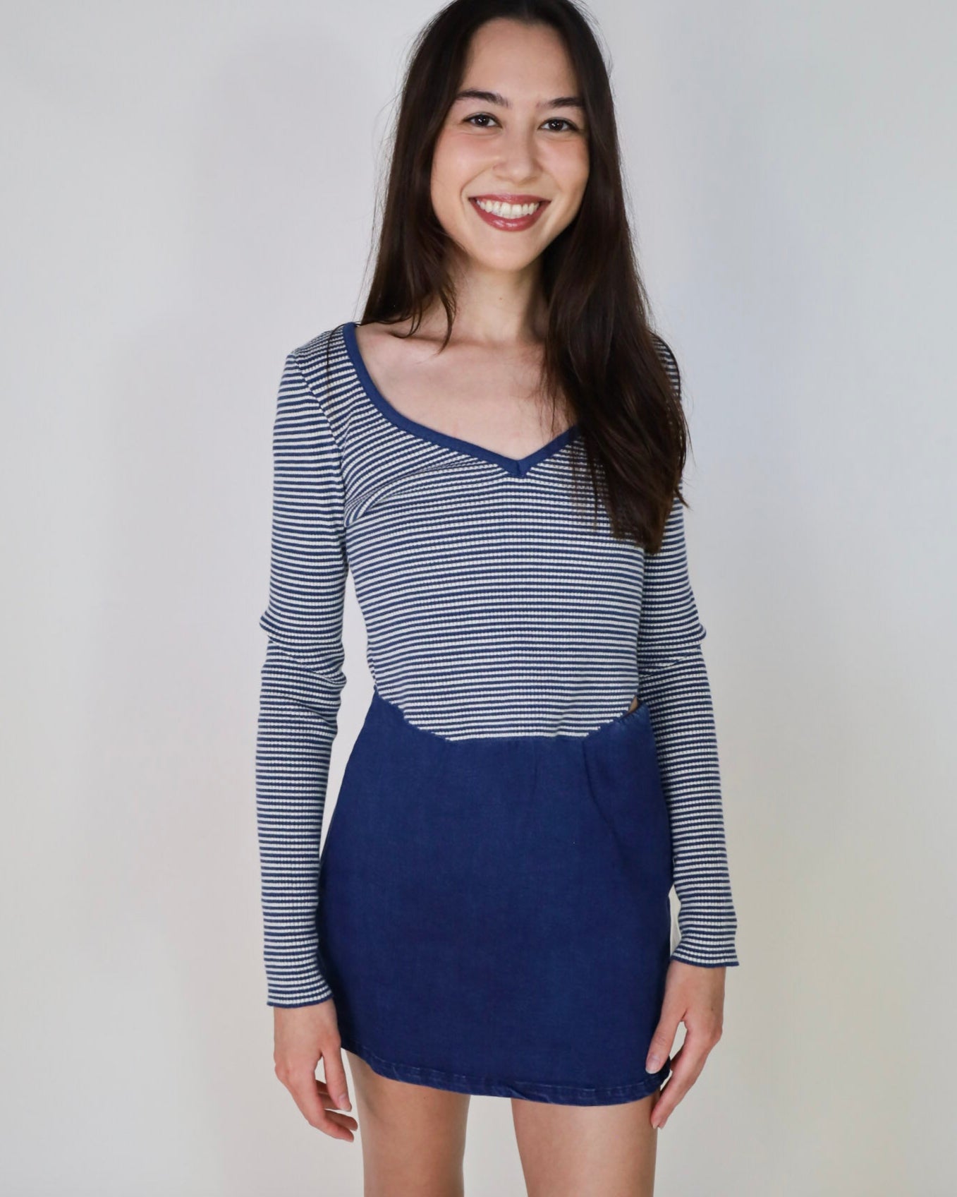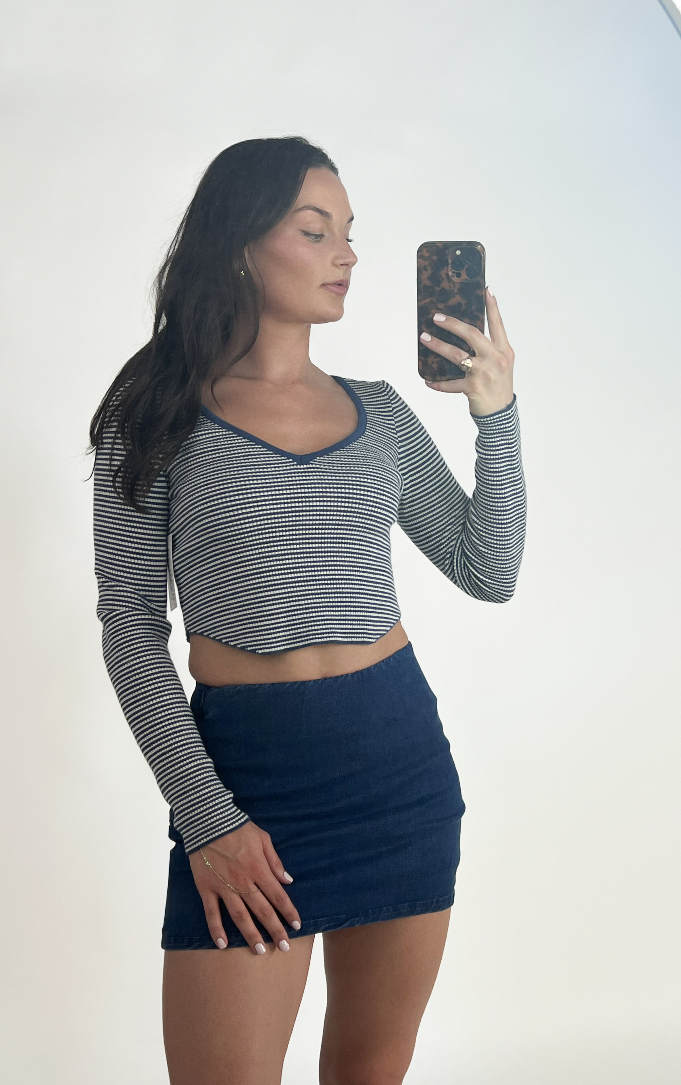 Get ready to turn heads with our V-Neck Striped Crop Sweater! Perfect for layering or rocking solo, this cropped sweater adds a fresh, lively vibe to any outfit. Stay stylishly snug!