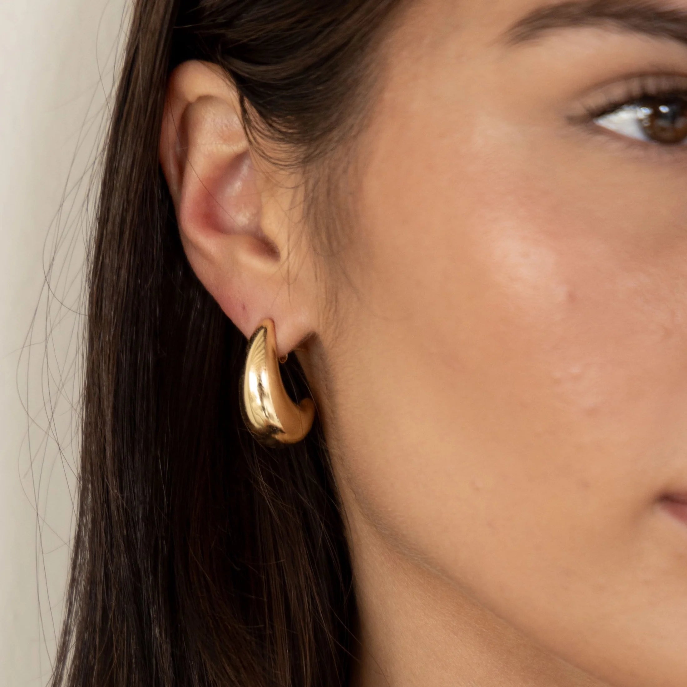 Add a touch of celestial charm to your outfit with CALABASAS Crescent Earrings by SAHIRA! These gold earrings feature a playful crescent shape, perfect for adding a quirky twist to your look. Elevate your style with these unique and stylish earrings.