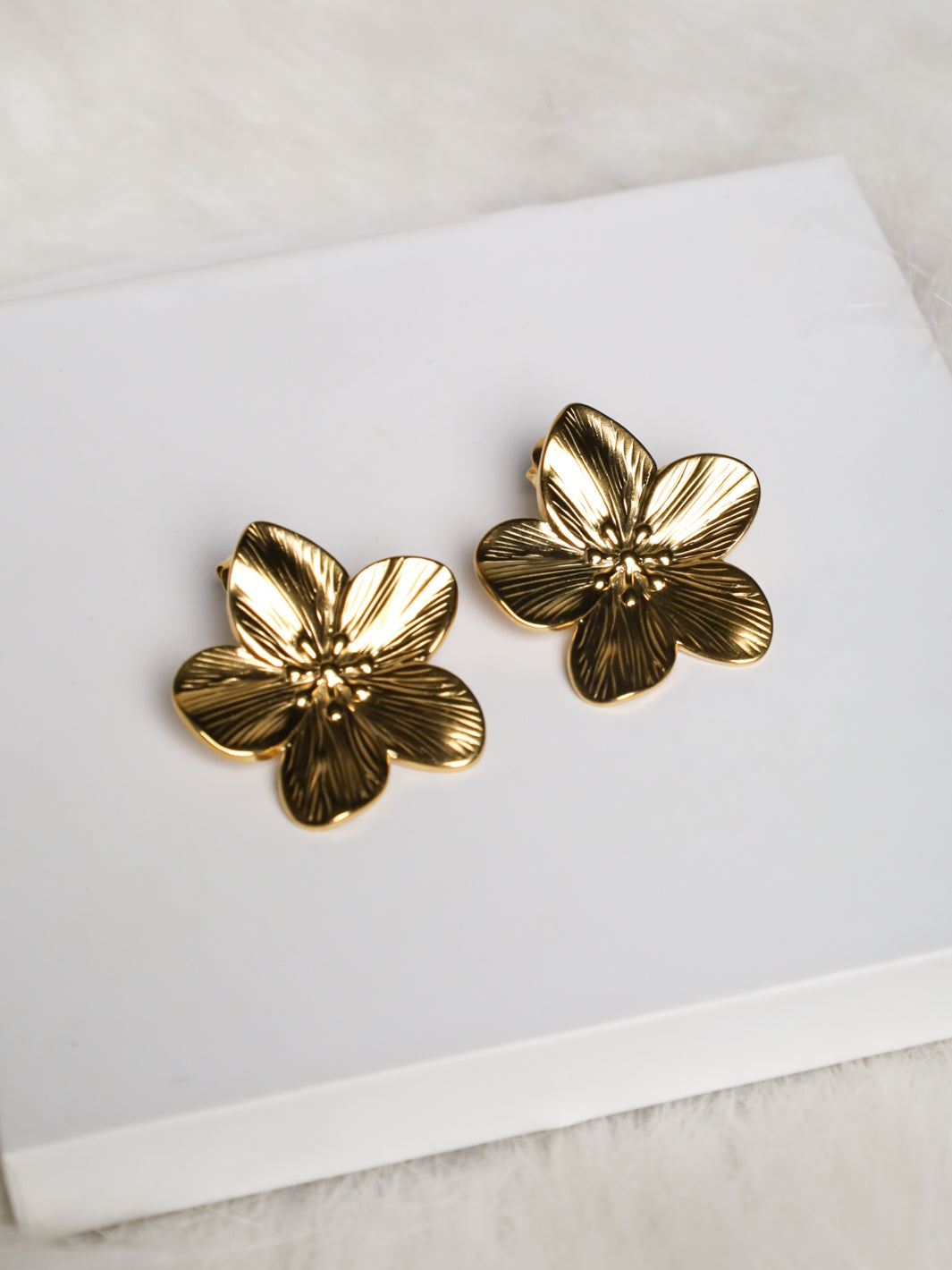 Add a blooming touch to your outfit with DARLA Flower Earrings. Crafted with 18K gold plating, these hypoallergenic earrings are both water and tarnish resistant. Say goodbye to pesky allergies and hello to stylish durability!