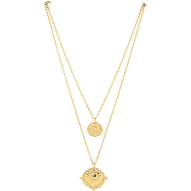 Add a touch of whimsy to your look with the GIGICC Double Chain Coin Necklace. Featuring a dainty gold chain and charming coin pendant, this SAHIRA jewelry piece is sure to make a playful statement. Perfect for any occasion, this necklace will elevate your style with ease!