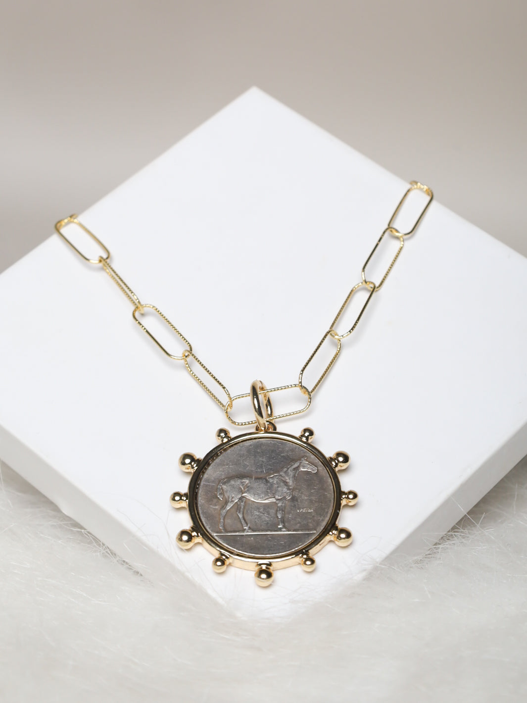 Ride into style with our 18K gold plated horse pendant necklace! Featuring a hypoallergenic and water-resistant design, this necklace is both fashionable and practical. With a gold link chain and SAHIRA jewelry branding, it's the perfect accessory for any horse lover. Don't horse around, get yours today!