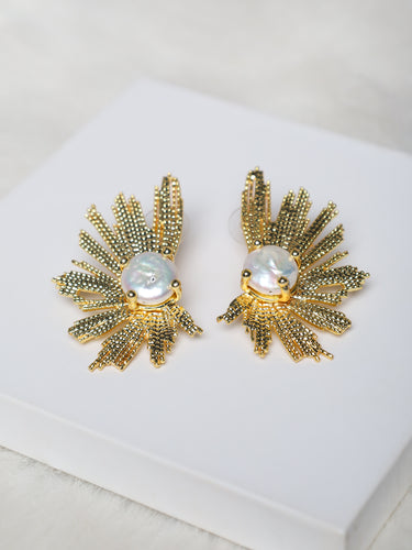 Make a statement with Marielle earrings from Sahira Jewelry! These 2" gold plated stainless steel earrings feature real pearls and a timeless design, adding classic glamour to any outfit. Water and tarnish resistant, dazzle your admirers today!