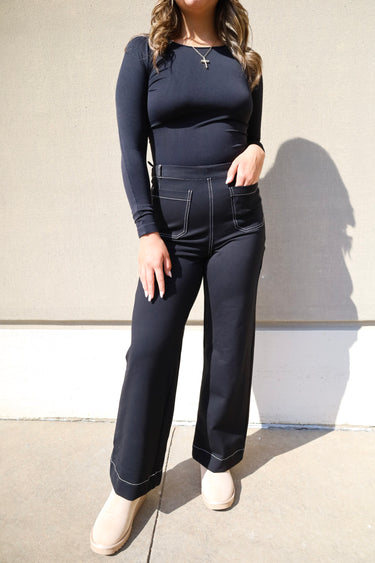 Contrast Stitch Ponte Wide Leg Pant