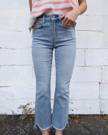 High Rise Step Hem Crop Flare Jeans