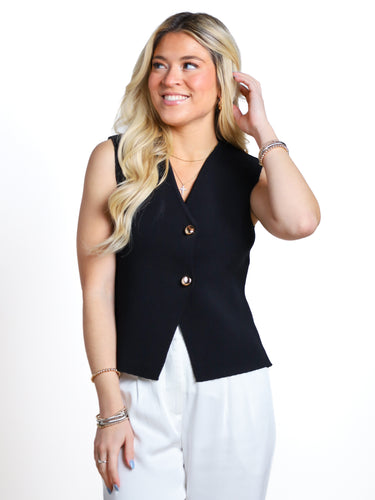 Polish Up Sleeveless Button Sweater