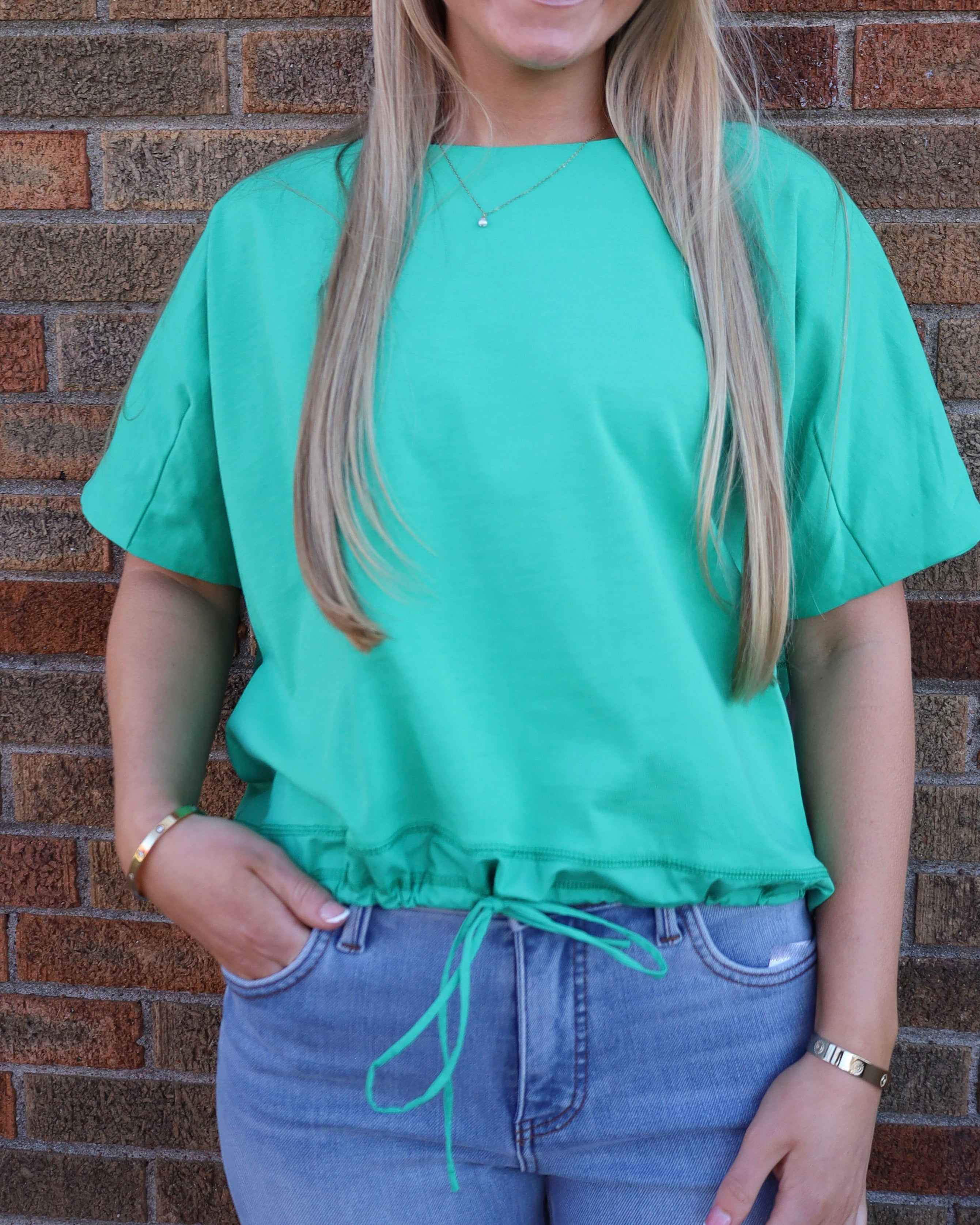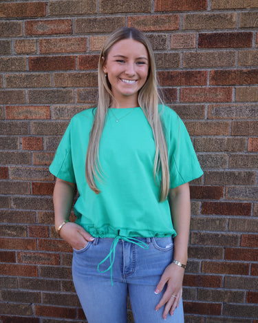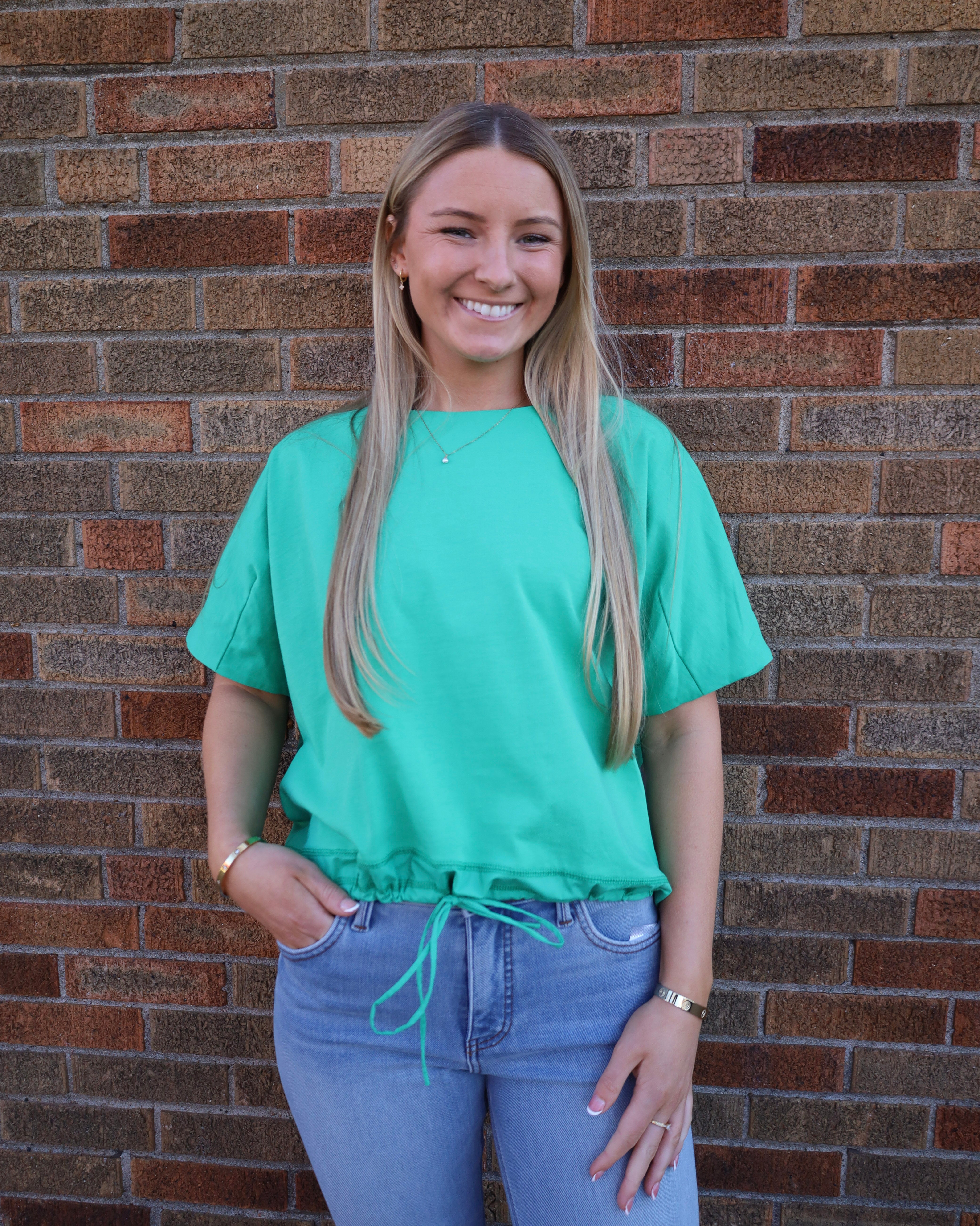 Drawstring Bottom Short Sleeve Knit Top