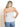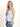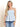 Ali is 5'4" and wearing a Small in Light Blue and White.