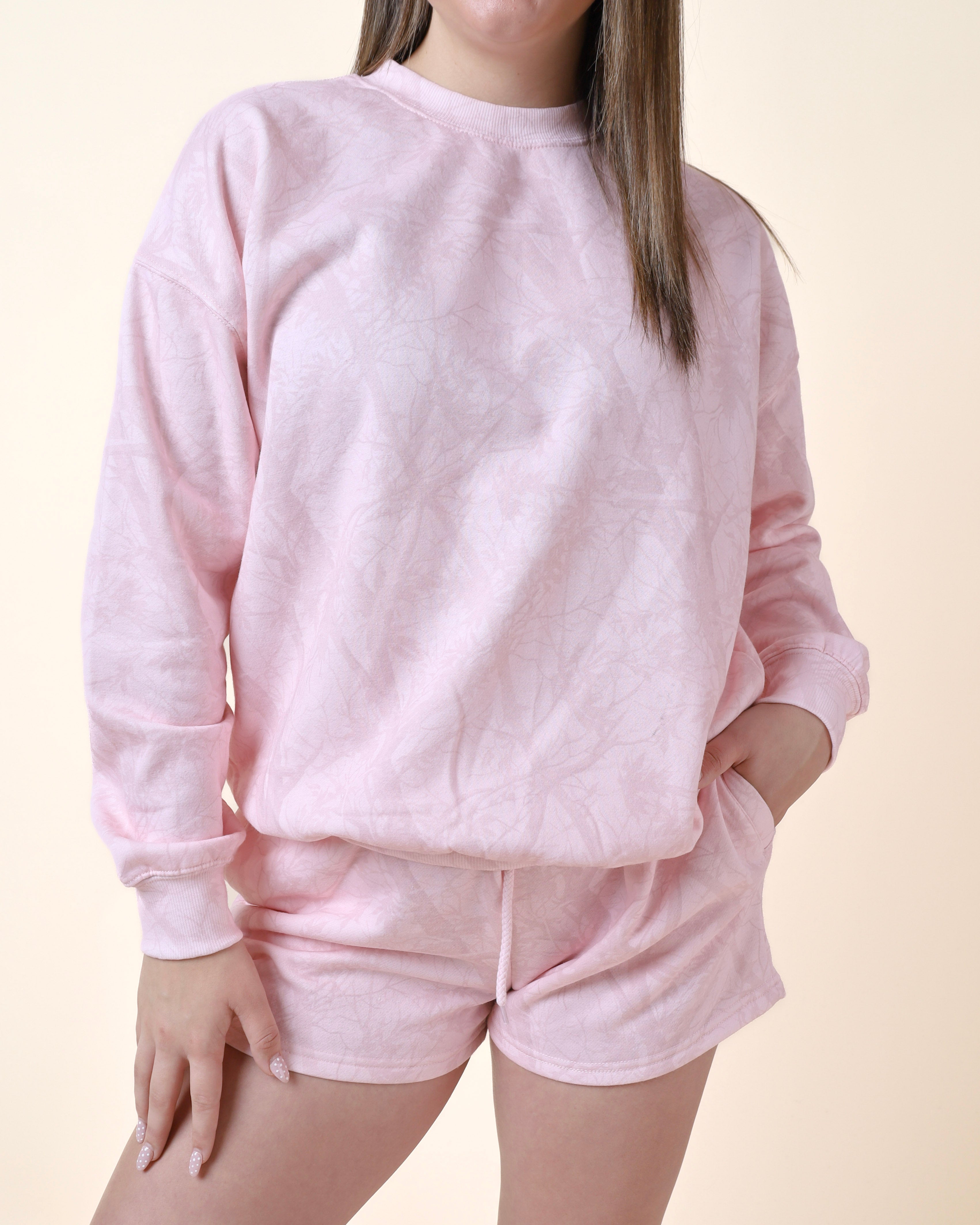 FIT: True to size. Model typically wears a Medium in sweatshirts.