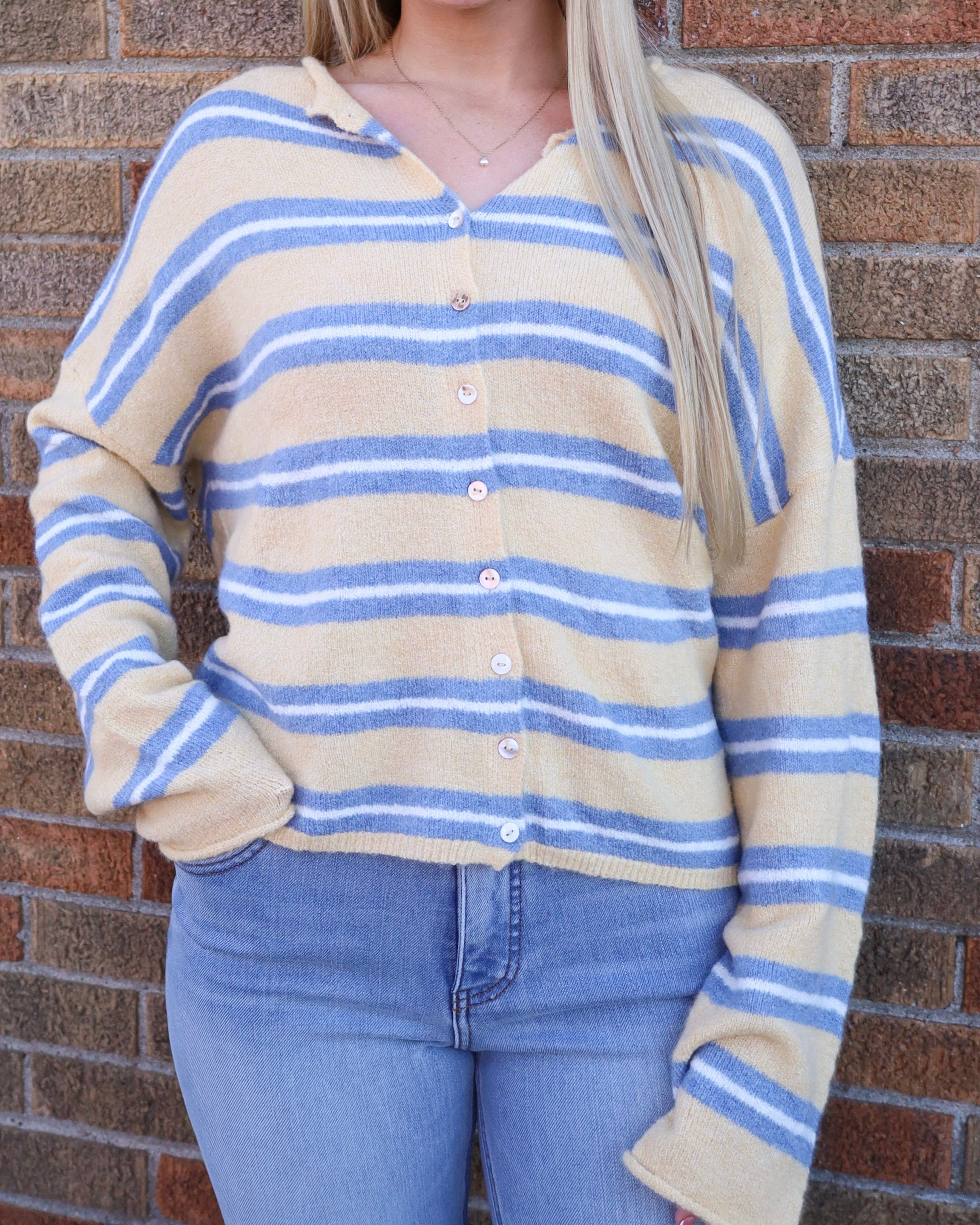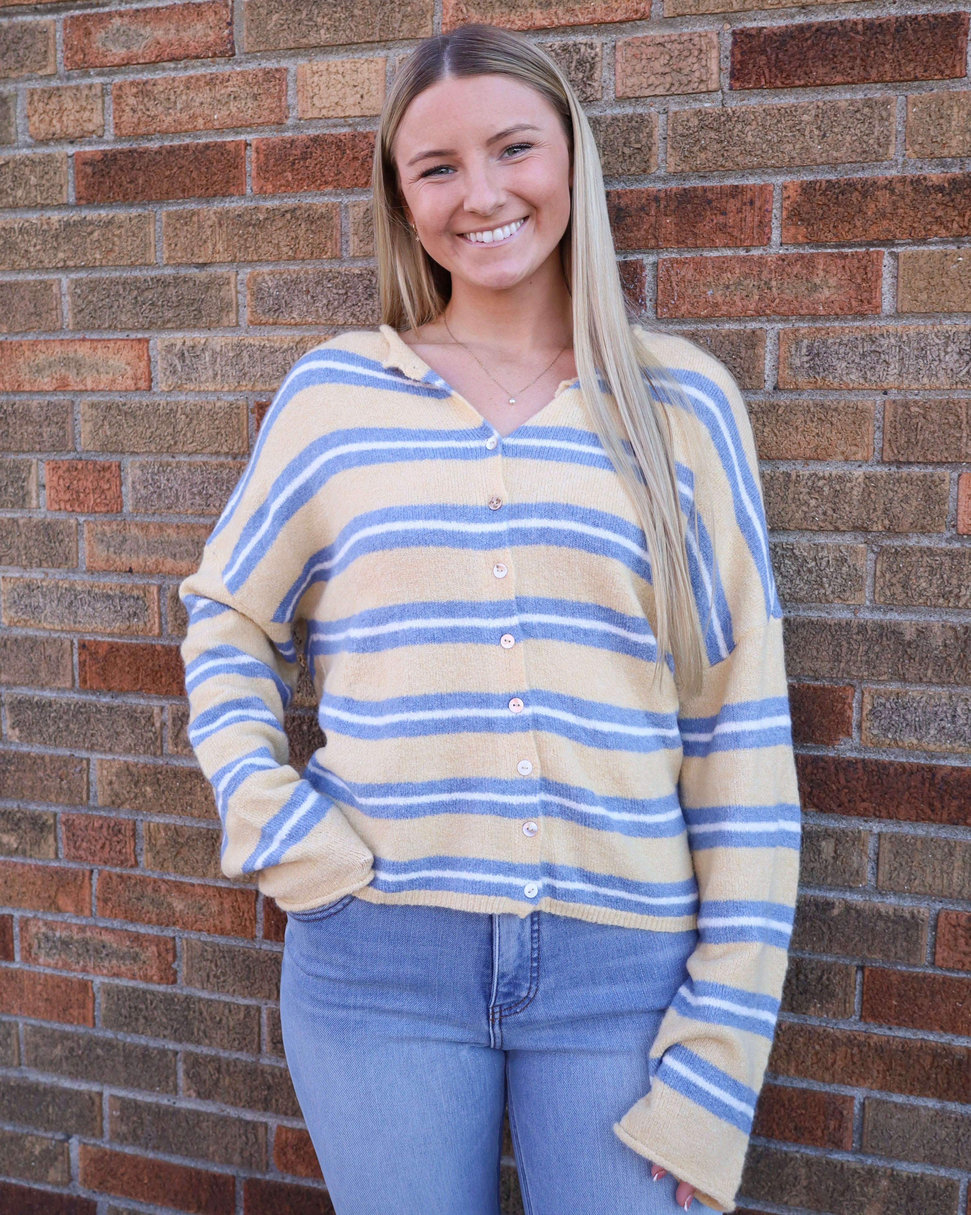 Striped Button Front Cardigan Sweater