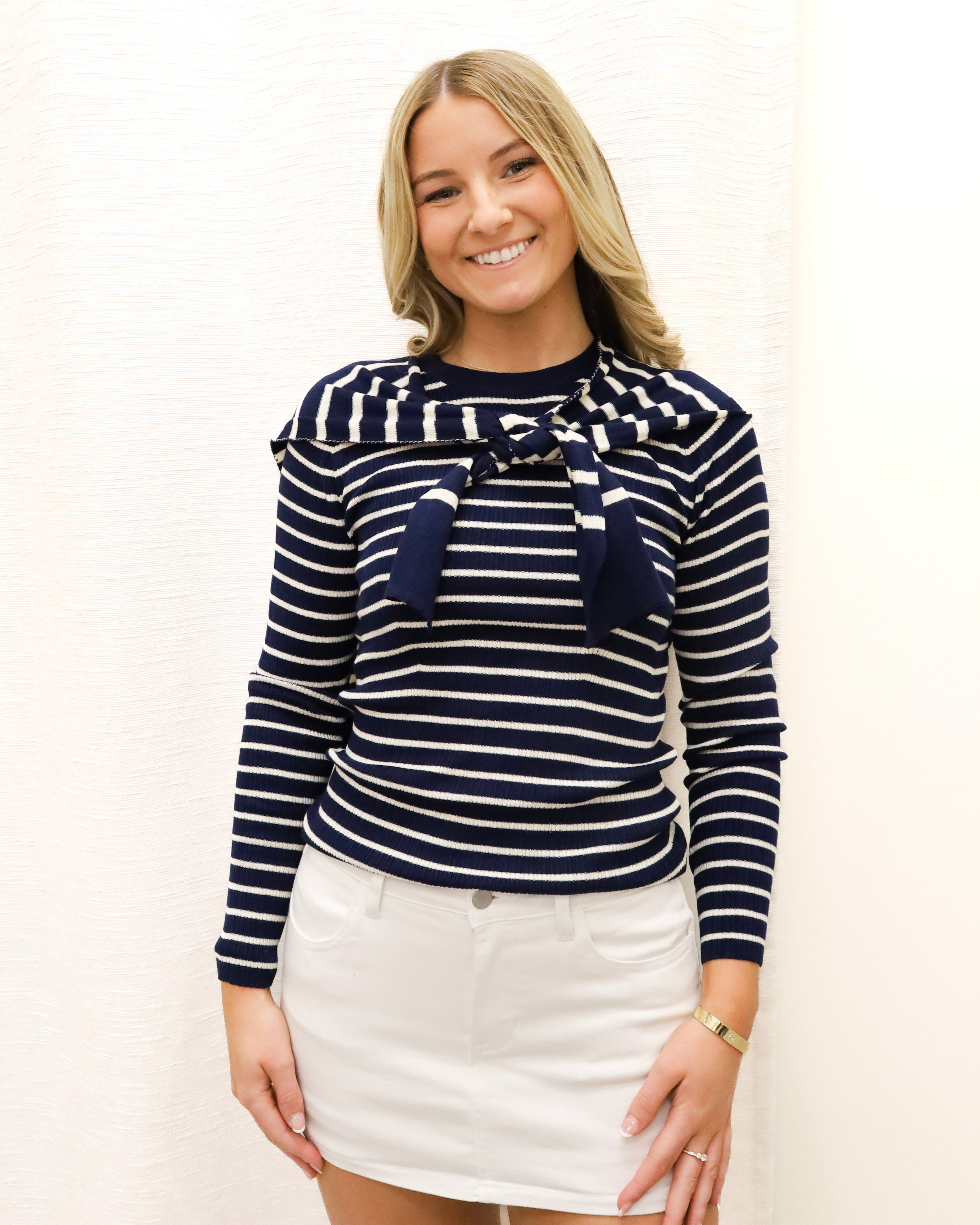 Faux 2pc Tie Striped Sweater