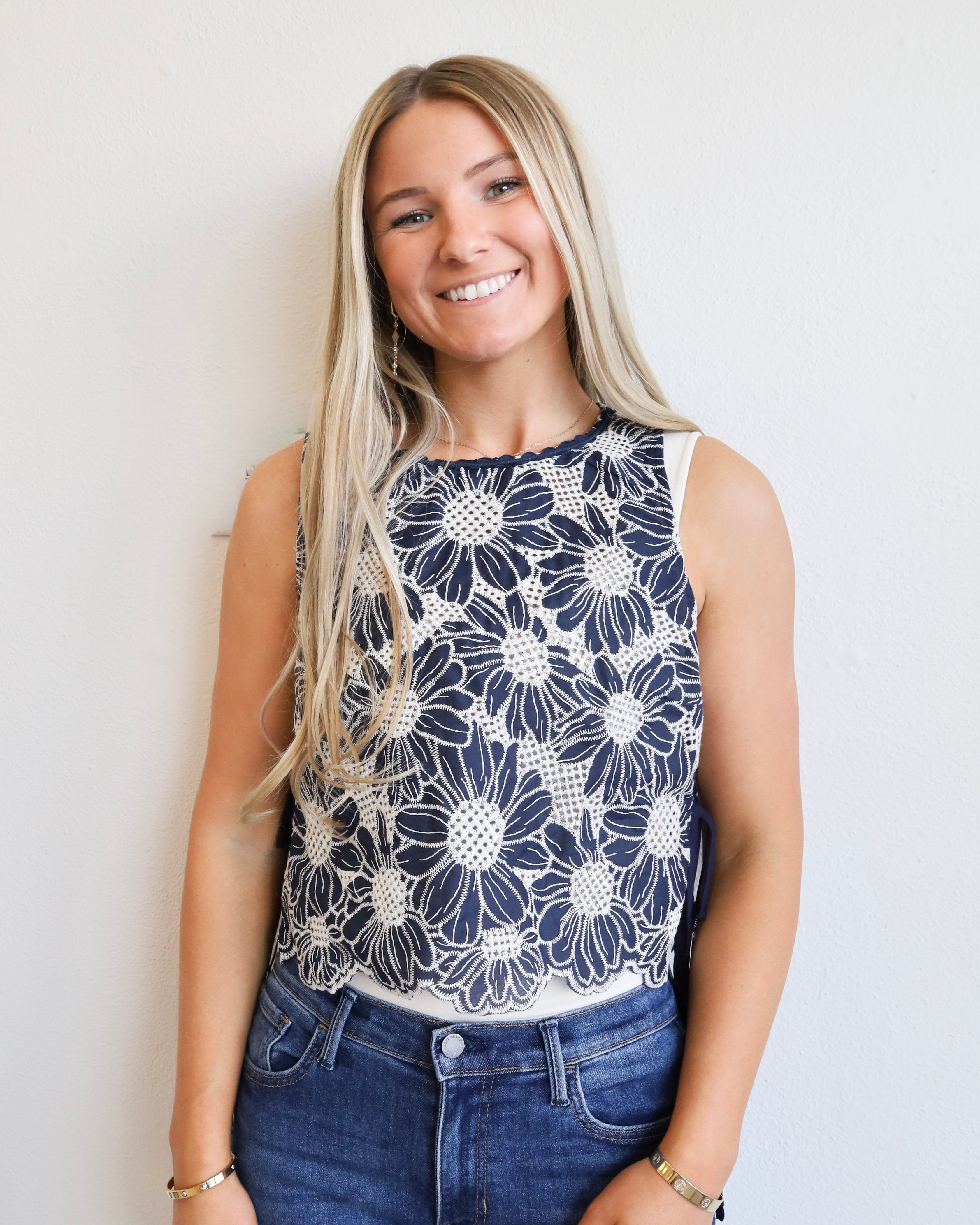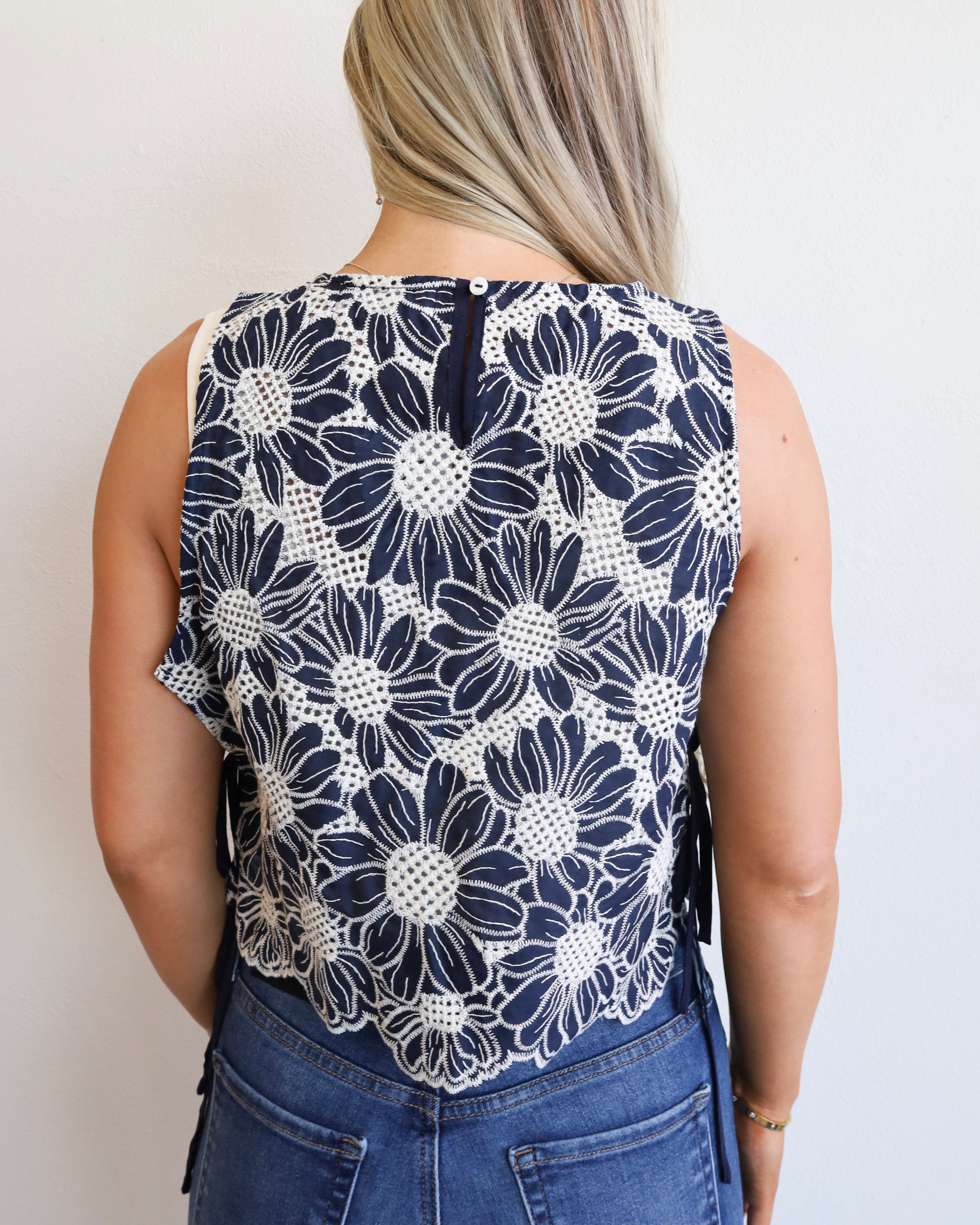 Flower Embroidered Side Tie Blouse