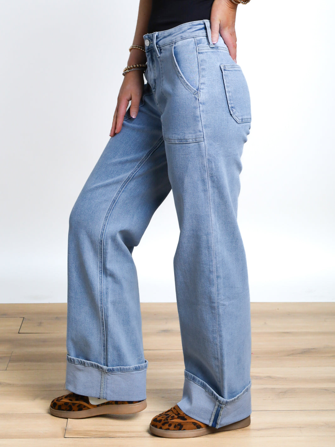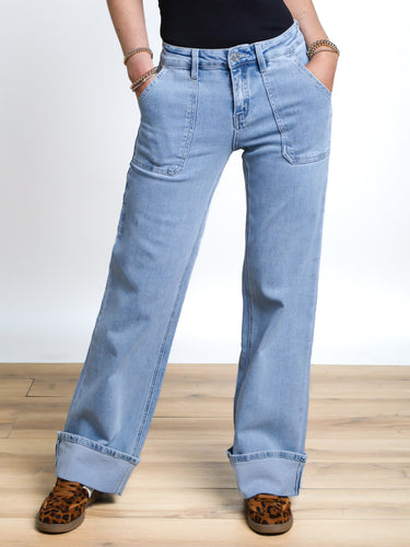 Introducing the Ayla High Rise Cuffed Wide Leg - your new go-to denim! With a light wash, high rise fit, and wide leg style, these LOVERVET jeans offer both comfort and style. Plus, the cuffed hem and button/zipper closure add a trendy touch. You'll love wearing these!