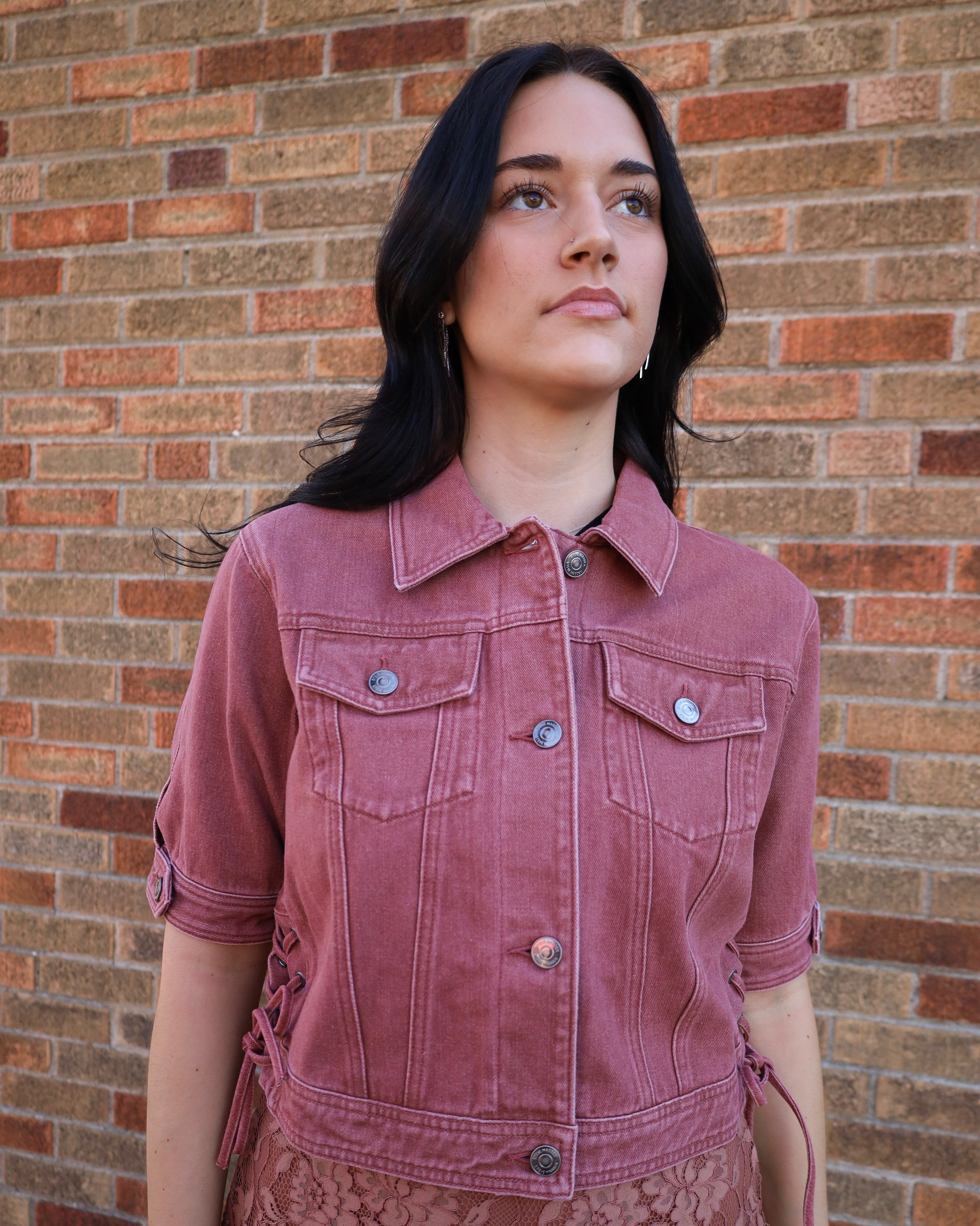 Blu Short Sleeve Side Tie Denim Jacket