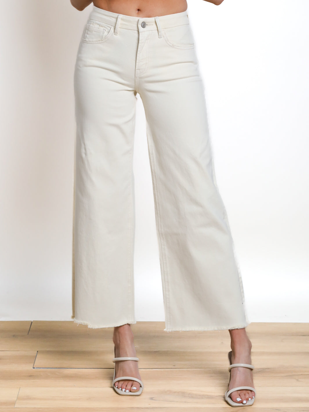Clara High Rise Raw Hem Ankle Wide Leg Jean