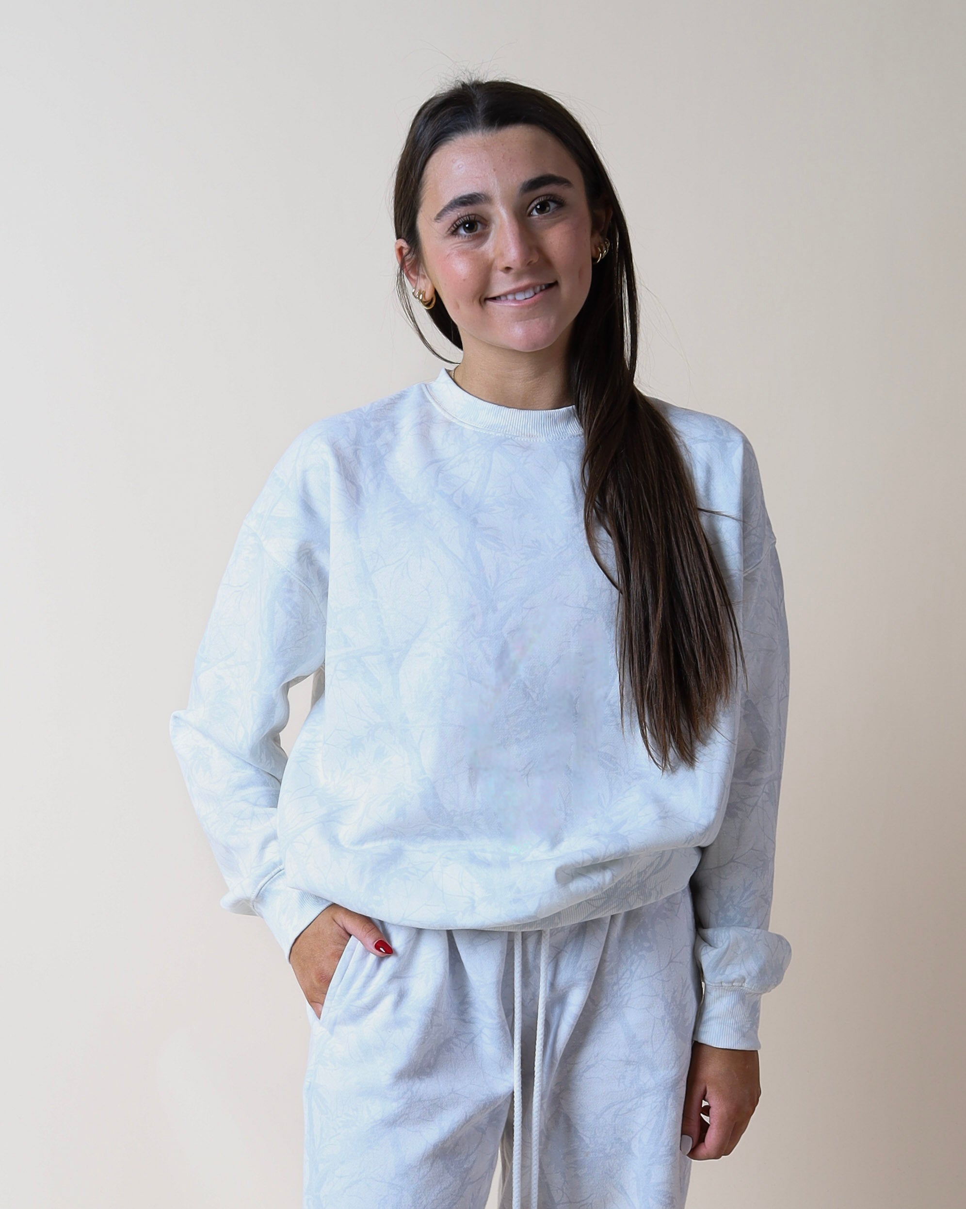 FIT: True to size. Model typically wears a size small in sweatshirts.